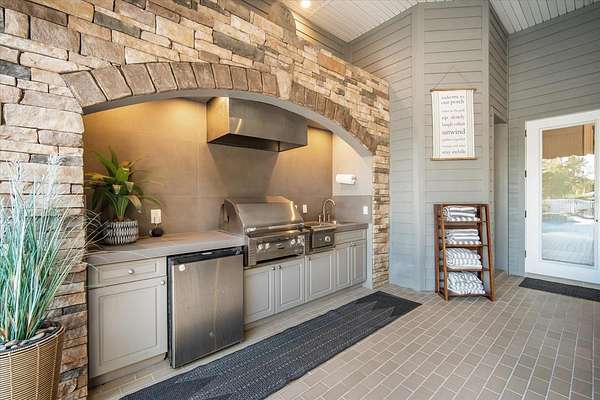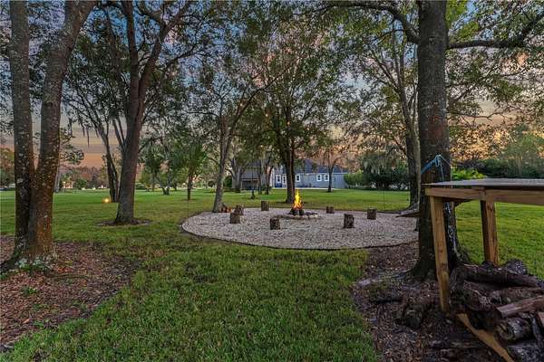 Outdoors, the estate truly shines. The pool area was refinished in 2024 and offers abundant space for lounging, dining, and entertaining. The impressive outdoor kitchen/grilling area, redesigned in 2025, is complemented by an outdoor fireplace that creates an elegant ambiance. The expansive backyard is framed by lush greenery, with a designated area ideal for a firepit and gathering under the stars. Native Florida wildlife, including deer and birds, can often be enjoyed right from your own backyard.