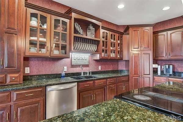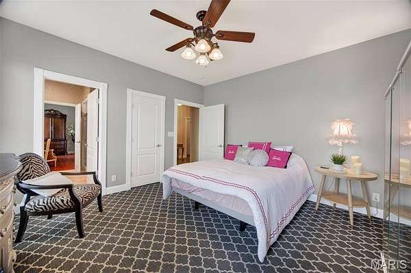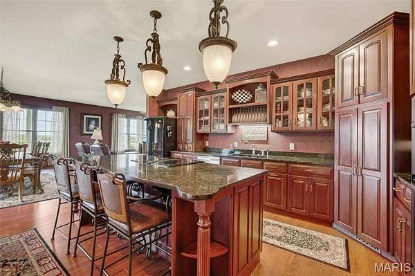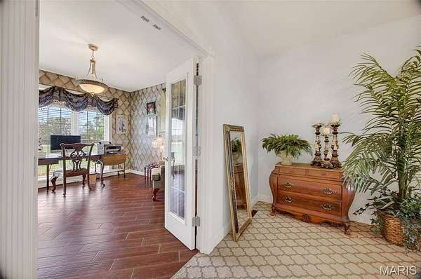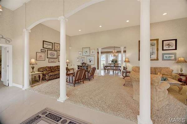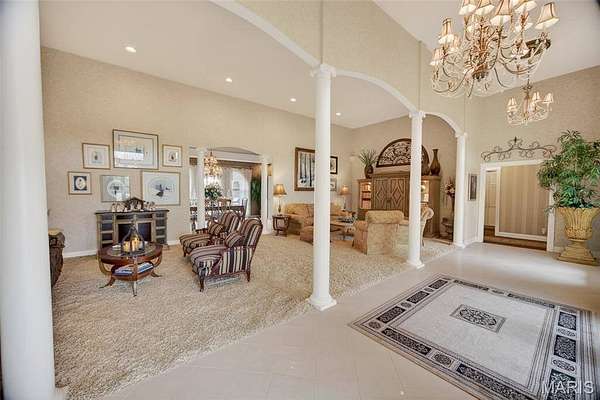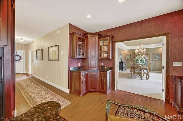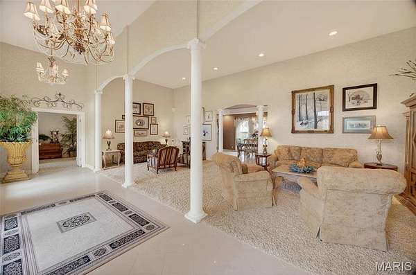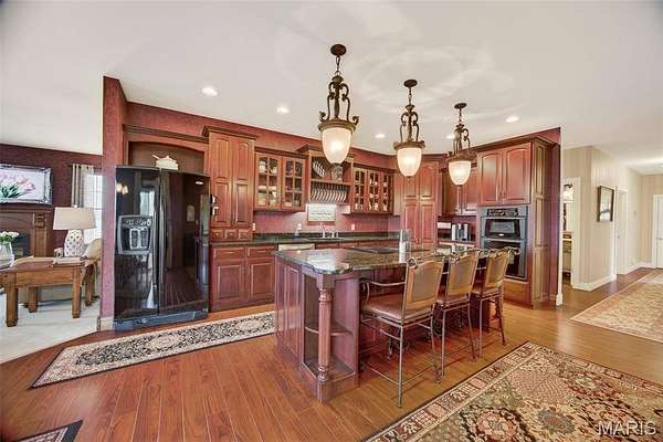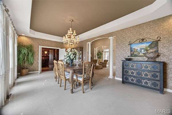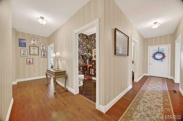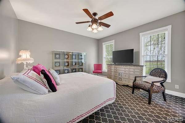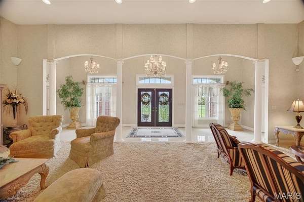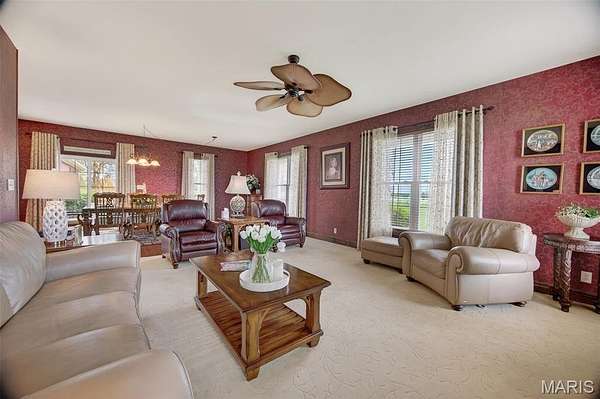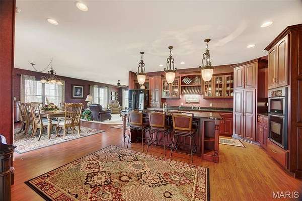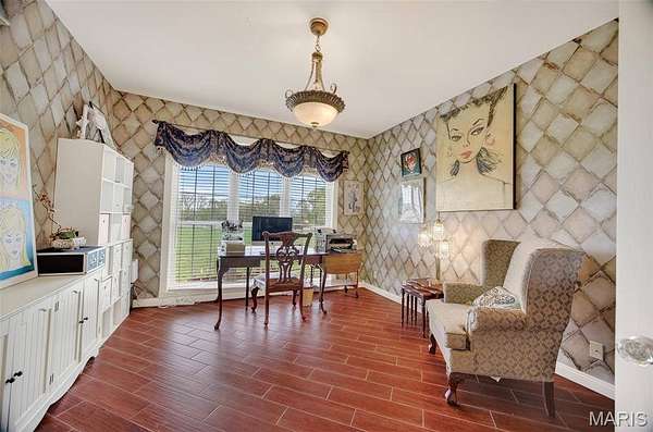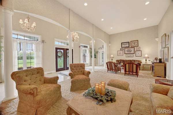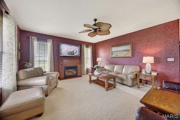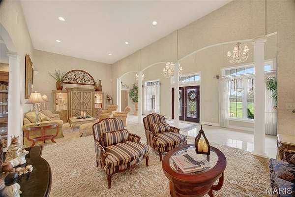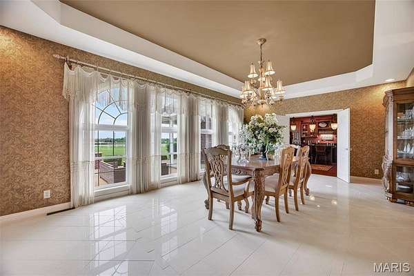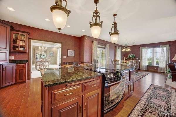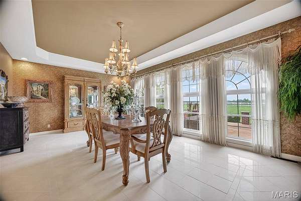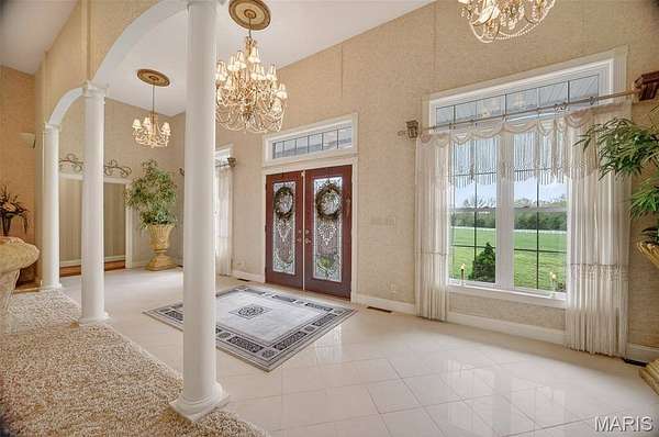 Set on 110+ acres of lush, fully fenced countryside, this distinguished brick estate offers an exceptional blend of refined interior living and expansive outdoor opportunity. Thoughtfully designed with both elegance and functionality in mind, the home welcomes you with impressive 12-foot ceilings and beautifully appointed gathering spaces throughout. The formal dining room showcases marble flooring, creating a sophisticated setting ideal for hosting. At the heart of the home, the kitchen features a large center island, granite countertops, a Jenn-Air stove, and a designated breakfast area with hardwood flooring, providing both everyday comfort and elevated entertaining space. Just beyond, the family room with an electric fireplace offers a warm and inviting retreat, while the formal double-sided sitting room adds timeless character and versatility. The spacious primary suite includes his-and-her closets and a luxurious ensuite bath complete with double vanity, jetted tub, separate shower, and an elegant crystal chandelier—a true private sanctuary. Additional highlights include an oversized laundry room with sink and extra storage, hardwired smoke detectors throughout the home, and enhanced wall insulation for comfort and efficiency. Practical upgrades continue beneath the home with a 4-foot lighted crawlspace, and peace of mind comes with a new roof currently being installed. The surrounding acreage—fertilized just last year—offers beautiful, productive land ideal for livestock, recreation, or simply enjoying the serenity of wide-open views. A rare opportunity to own a refined country estate with acreage, privacy, and thoughtful upgrades throughout. Call us to schedule your showing today.