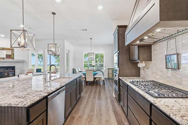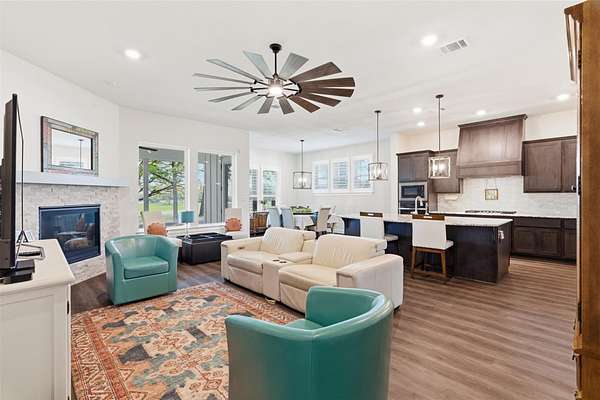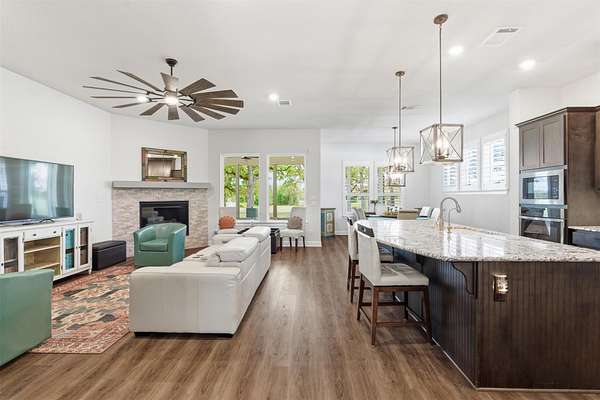 Set on 2 oak-covered acres in Tanglewood just minutes outside Lexington, this David Weekley-built home offers over 3,200 sq ft with an extended 3-car garage, combining quality construction, privacy, and a layout designed for everyday living. From the moment you step inside, you're welcomed by soaring ceilings, abundant natural light, and an open-concept design that feels both spacious and inviting. The kitchen is a true centerpiece, featuring custom Kent Moore soft-close cabinetry with built-in organizers, a massive granite island, and upgraded GE stainless appliances including a 36" gas cooktop, built-in oven, microwave, and vent hood. It flows seamlessly into the living area anchored by a tiled gas fireplace and statement ceiling fan. The primary suite offers a spacious layout with a large walk-in closet and a spa-style bathroom complete with double vanities and a fully tiled walk-in shower. A versatile bonus room provides flexibility for an office, playroom, or additional bedroom. Step outside to a screened-in back porch with ceiling fans-perfect for enjoying the outdoors year-round. The property is shaded by mature oak trees and offers ample space for a future pool, shop, or additional improvements. As an added bonus, a new Master Spa (valued at over $20,000) conveys with the property, creating a true backyard retreat. Additional upgrades include luxury vinyl flooring throughout, custom window blinds, full gutters, water softener, reverse osmosis system, pre-wiring for security and video doorbell, and Starlink equipment that conveys. The extended 3-car garage features epoxy floors, double doors, and exterior access, while the expanded driveway and outdoor space add both convenience and functionality. A rare opportunity to enjoy privacy, space, and modern finishes in a peaceful Central Texas setting.
