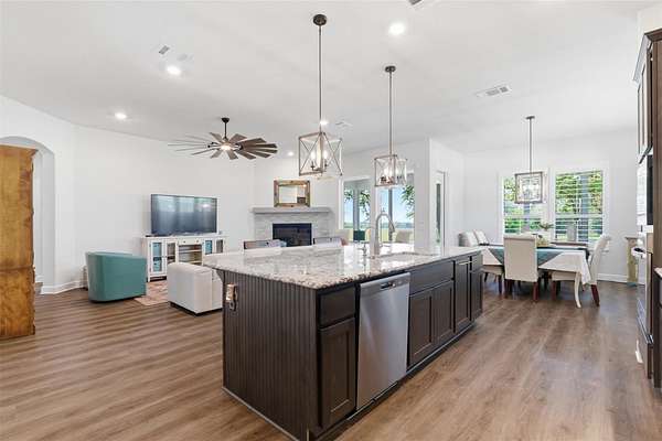 - Breakfast Bar, Ceiling Fan(s), Ceiling-High, Double Vanity, Granite Counters, Pantry, Primary Bedroom On Main, Wired For Sound