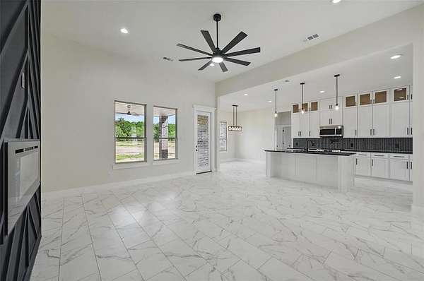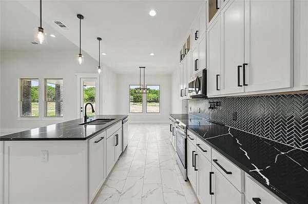 Kick off the New Year with an Unlimited Builder Incentive, receive up to $10,000 in seller concessions to apply toward closing costs or buy down your rate and save every month to this stunning 4-bedroom, 2-bathroom home in the highly sought-after Grison Estates, set on 2 acres of peaceful countryside within Mildred ISD. Showcasing a beautiful stone and brick elevation, this home features ceramic tile flooring, elegant quartz countertops, and a custom-built fireplace with views into both the kitchen and backyard. The kitchen offers generous counter space and cabinetry ideal for both everyday living and entertaining. The spacious primary suite is a true retreat, complete with a custom accent wall, a spa-inspired bathroom featuring a walk-in shower, freestanding tub, dual vanities, and a large walk-in closet. Step outside to a covered back patio perfect for enjoying serene mornings or stunning sunsets. Additional upgrades include full spray foam insulation, foundation piers for added stability, and a full irrigation system. This home blends luxury, comfort, and functionality don't miss it!