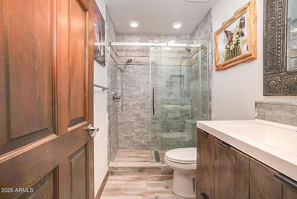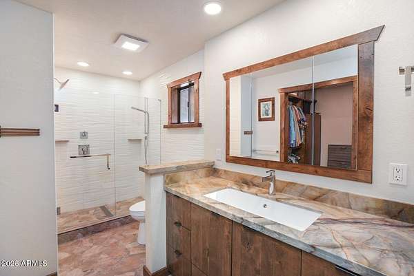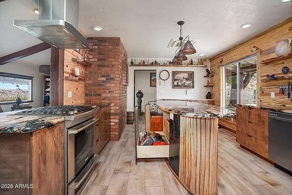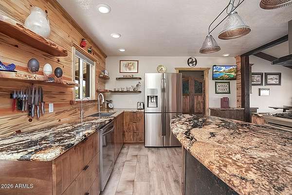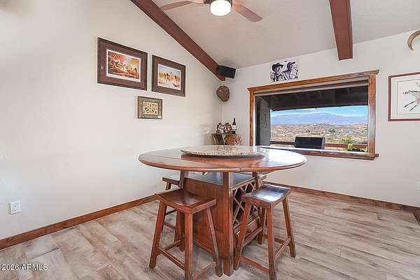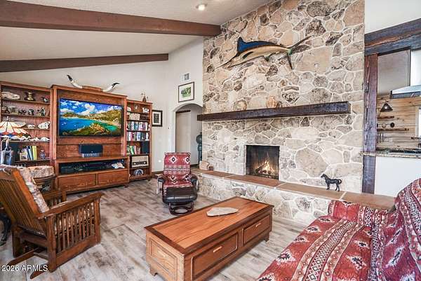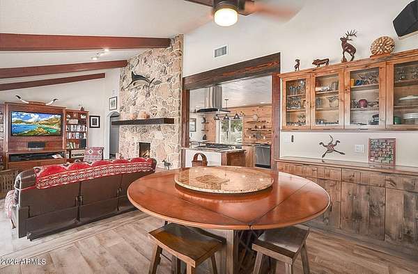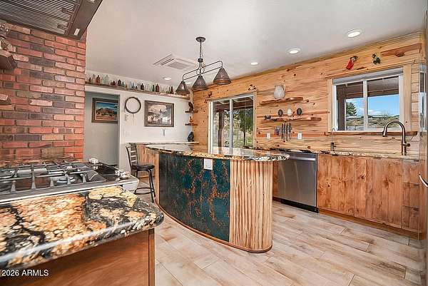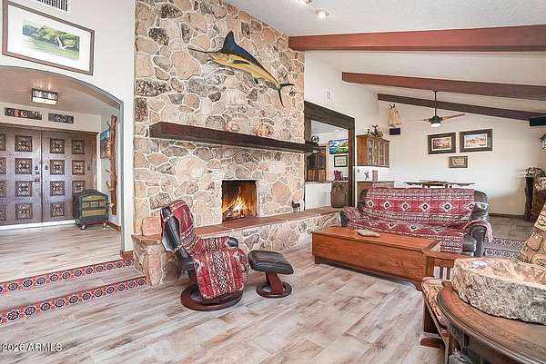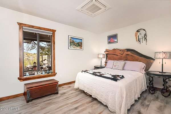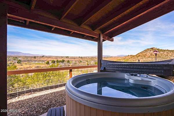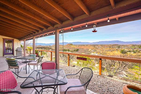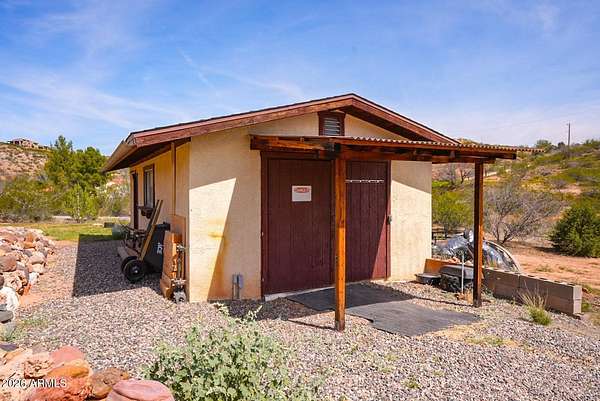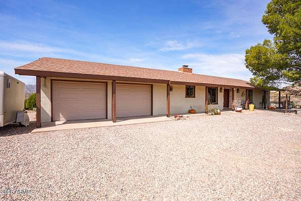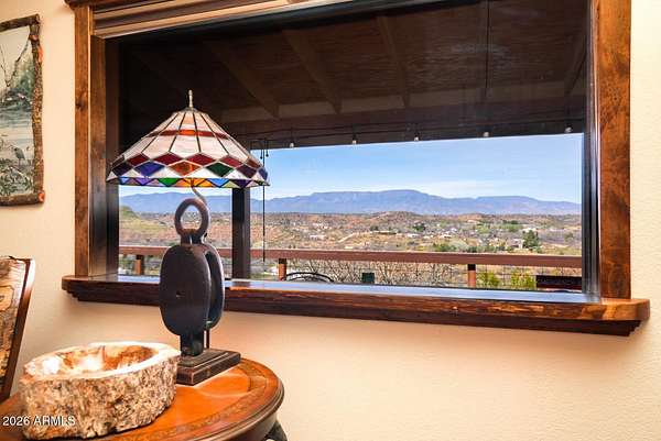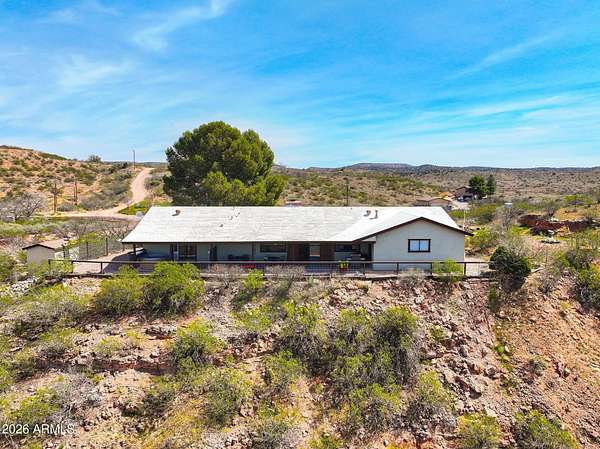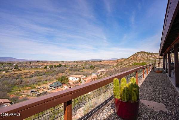 Incredible, one of a kind home, FILLED with character and true artistry. You will not find another one like it, and homes like this do not come up often. The kitchen is outfitted with custom cabinetry, granite counter tops, and a large walk in pantry. The bathrooms offer beautiful, modern rustic charm featuring walk in showers with dual shower heads in each bathroom. The living room has a massive floor to ceiling stone fireplace, vaulted ceilings, and incredible panoramic VIEWS of Oak Creek, Jerome, Mingus Mountain and local wineries. In addition to all of these things the home is heated and cooled with a mini split system that is zoned in 6 zones, allowing you to only heat and cool the areas you are using most. There is also an additional ~154 sqft hobby room that is heated and cooled. Outdoors you will find a 448 sqft workshop, a circle drive with a separate entrance and exit gate, and plenty of space for parking or animals. This home has so many incredible features, take a look at it today.