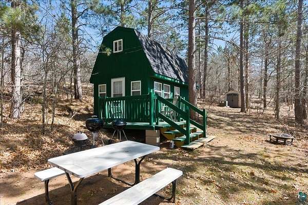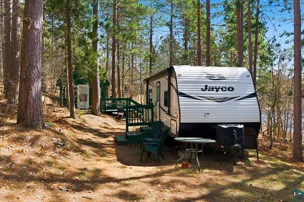 Lakefront retreat on Swenson Lake in Gordon, WI. This 1.22 acre property offers rare privacy with fewer than 8 properties on the entire lake. Swenson Lake is approximately 15 acres with a max depth of 15 feet, known for bass and panfish, plus a sand bottom and sandy shoreline - perfect for swimming and relaxing in the water. The property is set up for immediate enjoyment and comes with a 2019 Jayco travel trailer, a large screened porch for relaxing meals and evenings, and multiple fire pit areas spread throughout the lot. An oversized shed has been converted into a bunkhouse complete with an incineration toilet, and there is also a separate shed for lawn equipment and storage. Property is electric only. There is no well or septic system currently on property. Everything stays with the sale, including all camper and shed contents, patio furniture, and even the floating raft and paddle boat. Just bring your toothbrush, your favorite book, and some sunscreen to start enjoying true lakefront peace and quiet.