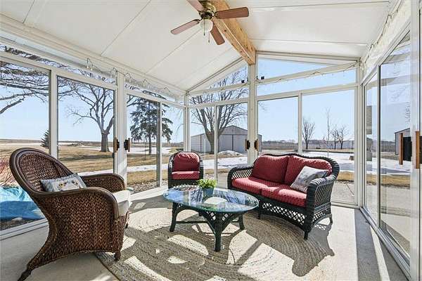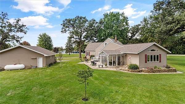 Country living at its finest awaits, this 6.42 acre property across from Lake Marion offers the lifestyle you’ve been dreaming of! This home has been in the same family for generations and the charm and warmth can be felt in every room! The living space flows beautifully from the well appointed kitchen and dining area into the spacious living room and a sun-drenched east-facing sunroom—ideal for slow mornings with coffee. Thoughtful updates include remodeled main floor bath with separate shower and soaking tub and a vast primary suite with walk in closet & 3/4 bath with walk in tiled shower. The convenient main floor laundry is steps away from both the primary suite and second bedroom. Adjacent to the laundry room is the main floor office, which has its own dedicated entrance. Two additional bedrooms are located on the second floor. Have toys? This property offers plenty of storage! A two stall garage and five additional outbuildings:54x99 pole building, 40x72 Quonset, 27x50 barn, 33x98 barn, and a 40x64 shop with three drive-in doors, office and in-floor heat. Mature trees including Oak, Maple & Honeycrisp Apples adorn the property. Compliant/Certified Septic System. Convenient Location: 10 minutes south of Hutchinson. 60 minutes to SW metro via HWY 212.
