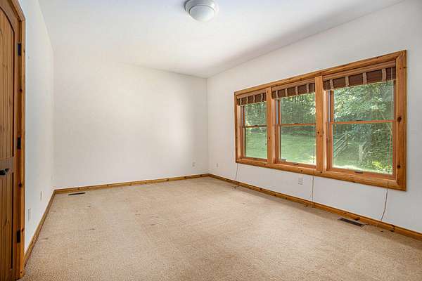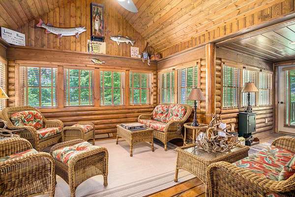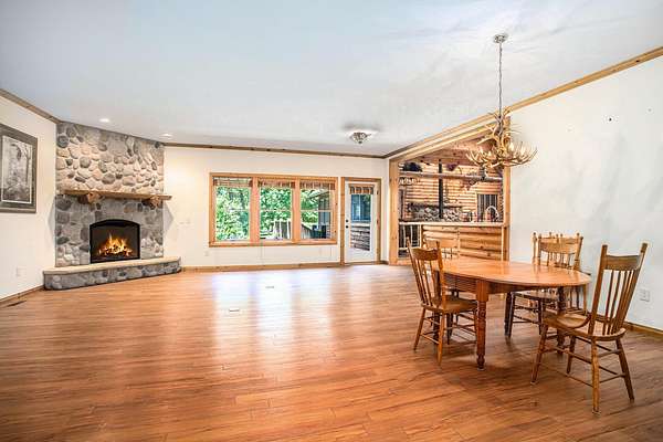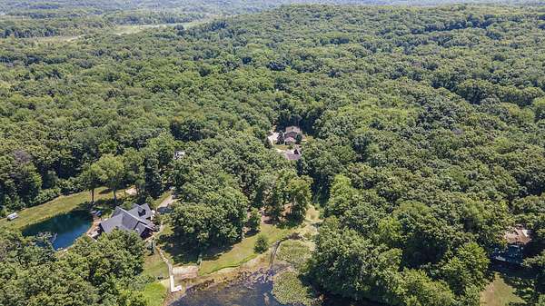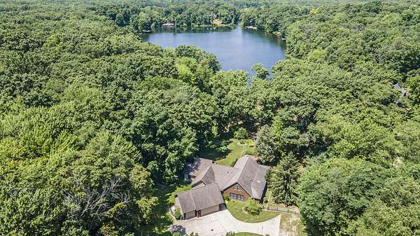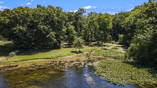 Exceptional Waterfront Log Home on 2.5 Acres This remarkable home offers serene privacy with frontage on picturesque Canterbury Lake full of massive Bass and panfish, a natural artesian spring winds through the property. Enjoy breathtaking water views from nearly every room. The main level features an expansive kitchen with center island, a spacious primary en-suite, inviting living room with fireplace, two additional bedrooms, a full bath, laundry, and an incredible log three-season porch. There's also an extra cozy log family room and a charming loft bedroom on the second floor. Step outside to multiple decks, covered porches, and lush, thoughtfully designed landscaping. Additional highlights include a whole-house generator, a 3-stall garage, a large pole barn, and a storage shed