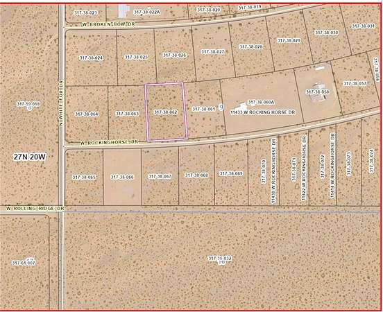 FROM KINGMAN, HIGHWAY 93, RIGHT ON WHITE HILLS RD, LEFT ON FAIRWAY, RIGHT ON ROLLING RIDGE, FOLLOW THE CURVE WHICH TURNS INTO WHITE FOX, RIGHT ON ROCKING HORSE DR, 3RD LOT ON THE LEFT