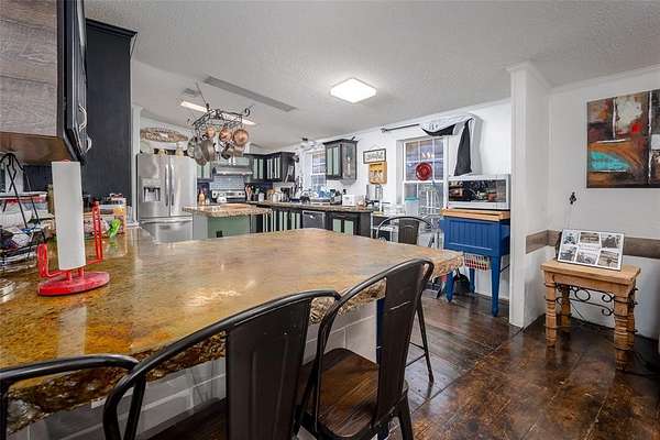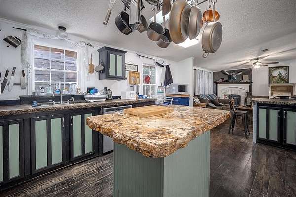 If you are looking for a country paradise on 10 rolling acres you do not want to miss this one! This slice of heaven on earth is complete with a 24x40 shop with a car lift, scenic koi pond, and your own private pond. The exterior of the home is outfitted with cabin like cedar siding and metal roof. The large and inviting living room features an eye-catching fireplace and dark hardwood flooring. The kitchen is the heart of the home with meals prepared around the island with granite countertop, large pantry, stainless steel appliances, and painted cabinets with rustic concrete countertops. The Primary Suite with garden tub will be your favorite hideaway at the end of a long day. 3 other spacious bedrooms and 2 additional bathrooms provide flexibility and space for any family. The well house is designed for convenience and efficiency with concrete flooring and loft space. Bonus the property also offers a storm shelter, 12x16 outbuilding, carport, and designated garden. The possibilities are endless, and the future is bright, schedule a showing today and let's make your dreams a reality.