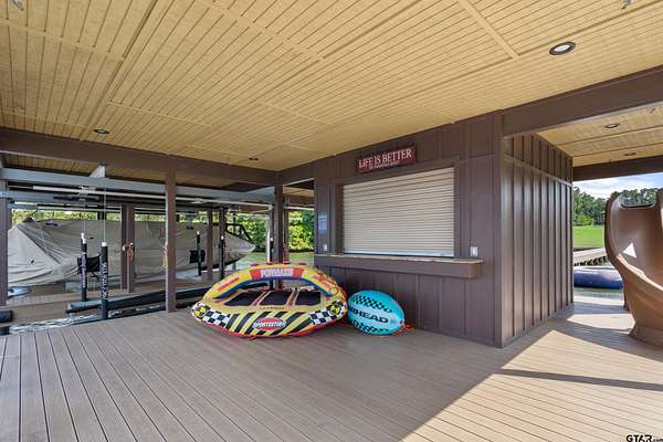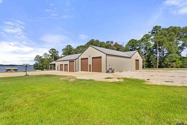 It is my pleasure to present this unparalleled, sprawling Lake Palestine legacy estate. Incredibly rare, this 72 ACRE (not 25 ac.) waterfront property has over 1250 feet of Lake frontage, all within the Bullard ISD boundaries. For the discerning few who demand life uncompromised, this is a once-in-a-lifetime opportunity to enjoy the convergence of absolute privacy and prime convenience, on Lake Palestine. The 3715 sf custom residence was built in 2019 and includes 4 bedrooms, 3 bathrooms, an office, formal dining and game room. Coffered and vaulted ceilings, abundance of natural light, professional-grade appliances and bespoke craftsmanship are just a few of the highlights found throughout. The chlorine pool and hot tub were added in 2024. The pool includes a grotto, diving board and slide along with a chiller for those hot days. The boathouse was built in 2023 with 100% Trex decking. Included are 2 boat slips, with 5K lb and 10K lb lift motors. There is a secured storage room, automatic mosquito and bird repellent system, slide and ladder and LED lighting. Even the utility side of the property is first-class. Over 10,000 sf of insulated and HVAC equipped shops cater to your collection of Ferrari's or John Deere's. Or choose pickleball or carpentry or rock climbing; there is climate controlled space for all of it. Remote driven shades and BigAss Fans cool the covered patios as you BBQ and enjoy the sunset. This is a generational asset, based on the enduring value of vast, private, waterfront acreage in a sought-after location. The sheer volume of high-quality improvements, all recently completed, ensures that the new owner can simply turn the key and begin a life of unrivaled luxury and complete seclusion. Not to be repeated or replicated, your memories start here. Qualified buyers are invited to schedule a private viewing to fully appreciate the scope and exclusivity of this extraordinary Lake Palestine estate.