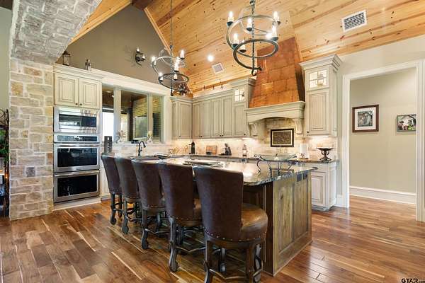 It is my pleasure to present this unparalleled, sprawling Lake Palestine legacy estate. Incredibly rare, this 72 acre waterfront property has over 1250 feet of Lake frontage, all within the Bullard ISD boundaries. For the discerning few who demand life uncompromised, this is a once-in-a-lifetime opportunity to enjoy the convergence of absolute privacy and prime convenience, on Lake Palestine. The 3715 sf custom residence was built in 2019 and includes 4 bedrooms, 3 bathrooms, an office, formal dining and game room. Coffered and vaulted ceilings, abundance of natural light, professional-grade appliances and bespoke craftsmanship are just a few of the highlights found throughout. The chlorine pool and hot tub were added in 2024. The pool includes a grotto, diving board and slide along with a chiller for those hot days. The boathouse was built in 2023 with 100% Trex decking. Included are 2 boat slips, with 5K lb and 10K lb lift motors. There is a secured storage room, automatic mosquito and bird repellent system, slide and ladder and LED lighting. Even the utility side of the property is first-class. Over 10,000 sf of insulated and HVAC equipped shops cater to your collection of Ferrari's or John Deere's. Or choose pickleball or carpentry or rock climbing; there is climate controlled space for all of it. Remote driven shades and BigAss Fans cool the covered patios as you BBQ and enjoy the sunset. This is a generational asset, based on the enduring value of vast, private, waterfront acreage in a sought-after location. The sheer volume of high-quality improvements, all recently completed, ensures that the new owner can simply turn the key and begin a life of unrivaled luxury and complete seclusion. Not to be repeated or replicated, your memories start here. Qualified buyers are invited to schedule a private viewing to fully appreciate the scope and exclusivity of this extraordinary Lake Palestine estate.