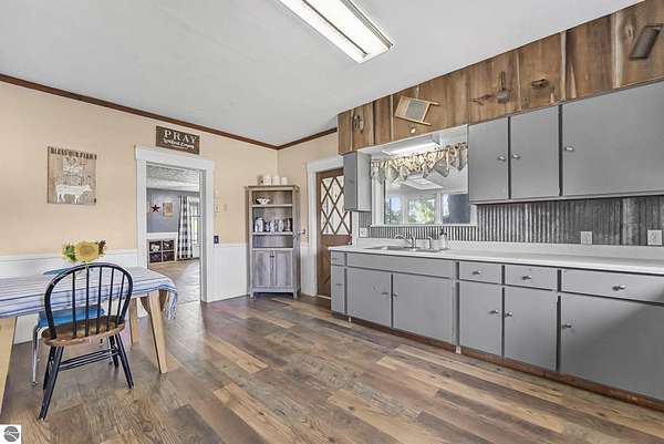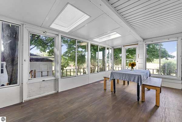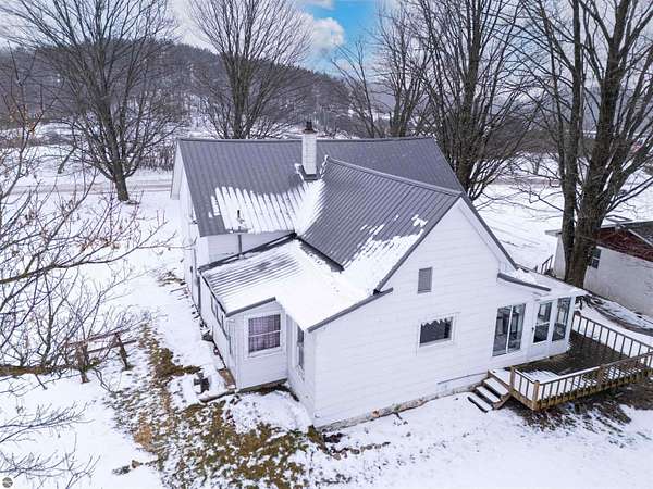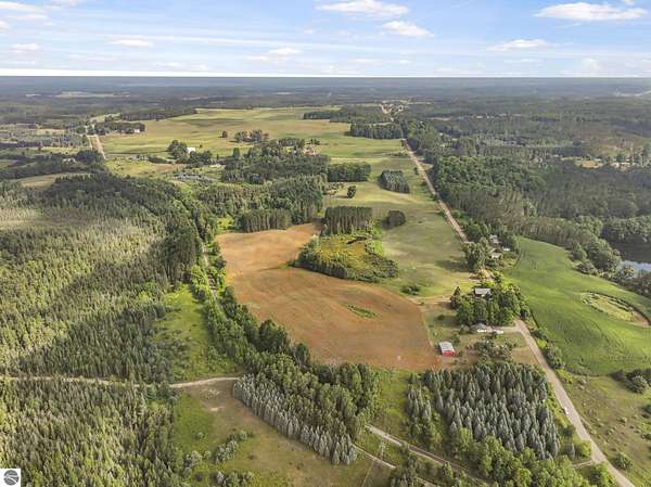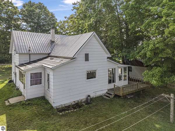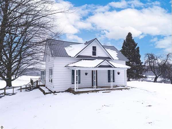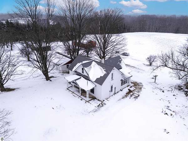 Discover the charm of country living with this inviting 2-bedroom, 1-bathroom farmhouse set on 40 beautiful rolling acres near the end of a dead-end road. Featuring a main floor master bedroom, main floor laundry, and a butler's pantry, this home combines timeless character with practical convenience. Upstairs, you'll find an additional room that can serve as a third bedroom, home office, or creative space. Enjoy peaceful mornings and summer evenings on the screened porch, overlooking the serene surroundings. Recent updates include a new well, metal roof, fresh paint, and some updated flooring, providing a comfortable blend of old and new. The land offers a mix of 5 plus acres of fenced pasture, over 9 acres of tillable ground, and gently rolling terrain, as well as a pond, ideal for a variety of uses. An established apple orchard adds seasonal beauty and bounty as well as food for wildlife, while the White Pine Trail crosses the southwest corner for easy access to biking, walking, or snowmobiling adventures. Outbuildings abound with a spacious 3-car detached garage, a 30x40 pole barn with a concrete floor perfect for equipment or workshop space, and a classic 2-story barn offering additional storage or livestock potential. Whether you dream of starting a hobby farm, cultivating crops, hunting or simply enjoying wide-open spaces, this property provides endless possibilities. Located in a peaceful rural setting yet just outside Cadillac, this is a rare opportunity to own a slice of Michigan countryside with both history and utility which would make an ideal setting for a hobby farmer or outdoor enthusiast.
