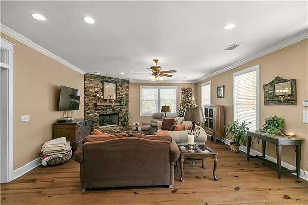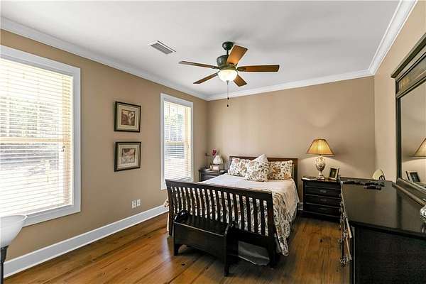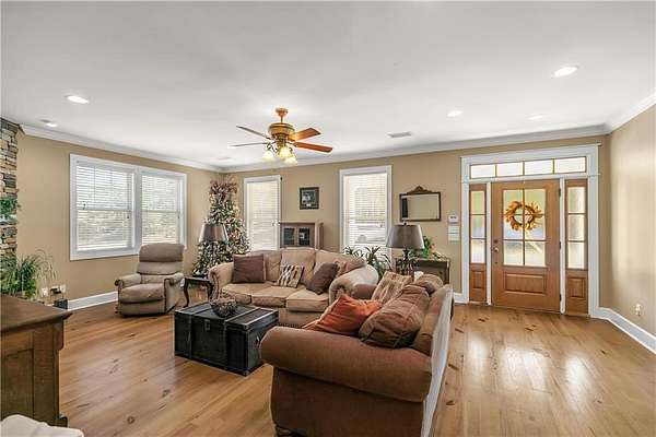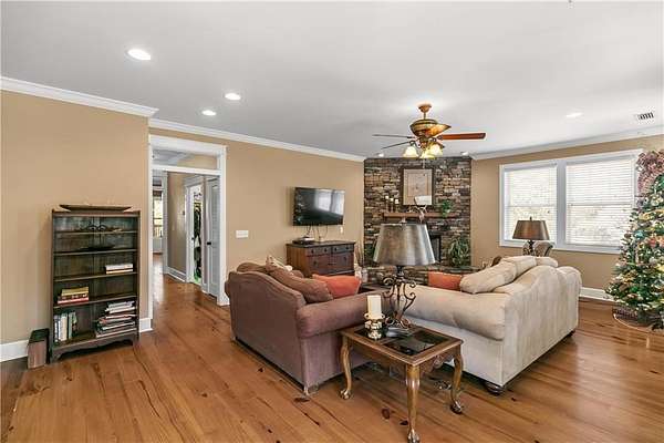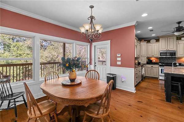 The home itself welcomes you with abundant natural light and beautiful pine floors. The main level features a lovely family room with a gas/wood-burning fireplace. On the main level, you'll find a convenient laundry area and a guest room with a full bathroom. The primary suite offers direct access to a screened porch, a spacious walk-in closet, and an en-suite bathroom with a jetted tub and separate shower. The kitchen, located on the main level, is bright and inviting with an eat-in area, an island, two ovens (one of which is a convection/baking oven), and a large walk-in pantry.
