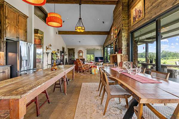 Escape the ordinary and step into opportunity with this sprawling 70+ acre property offering boundless potential. Newly constructed, this stunning home offers the perfect combination of style, comfort, and functionality, designed for those who appreciate the beauty of nature and the luxury of a contemporary build. Boasting three spacious bedrooms and three bathrooms, the open-concept living space features soaring ceilings, abundant natural light, and high-end finishes throughout. The gourmet kitchen is a chef's dream with top-of-the-line appliances and custom cabinetry, making it ideal for both everyday meals and large gatherings. Step outside onto your expansive grounds and enjoy breathtaking views of gently rolling pastures, wooded areas, and a serene pond. The perfect spot to unwind or create lasting memories with family and friends. The land is versatile, with ample space for farming, gardening, or outdoor recreation. Gently rolling terrain, mature trees, and open clearings make the landscape both scenic and functional. With ample road frontage and easy access to Henderson, Longview, Tatum and Lake Cherokee, the location offers the perfect balance of privacy and convenience. With all the charm of country living and the benefits of new construction, this property is move-in ready and packed with potential. Don't miss this once-in-a-lifetime opportunity to live, work, and thrive on your own private slice of paradise.