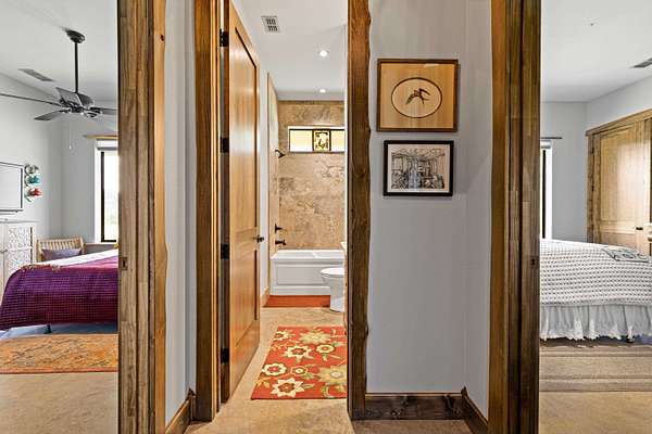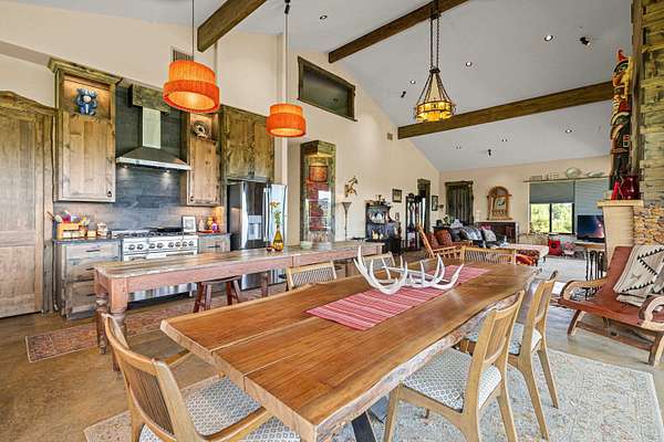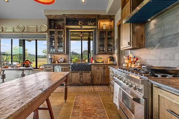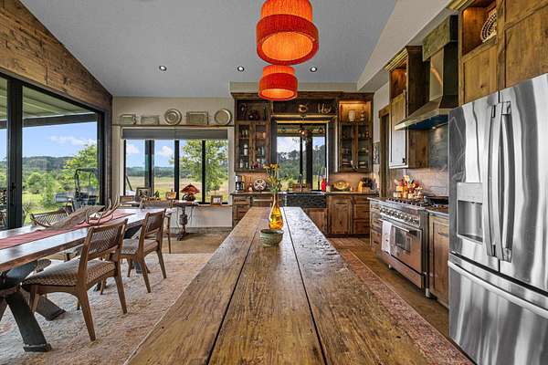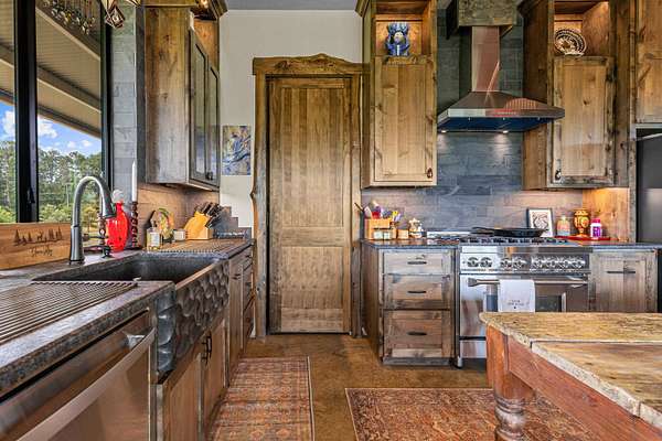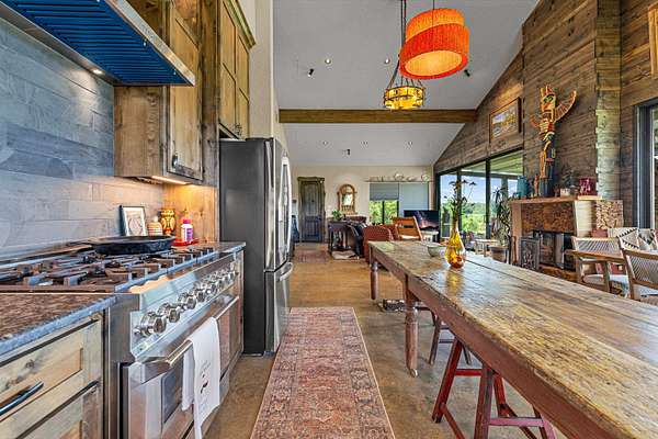 Discover thoughtfully designed craftsmanship and modern luxury in this custom-built home, completed in 2023 by an experienced builder with over 23 years in fine home construction. Built for both durability and efficiency, the home features 2x6 exterior walls, 10-foot wall heights, and foam insulation for superior comfort year-round. Inside, high ceilings in select areas enhance the open, airy feel. The living room makes a bold statement with two expansive 18’ x 9’ sliding glass doors, seamlessly blending indoor and outdoor living. Additional main living spaces are filled with light thanks to oversized 6’ x 6’ sliding windows. The kitchen is a true showpiece, featuring a 36” gas stove, a beautifully carved stone sink, and knotty alder wood cabinetry with illuminated upper cabinets. This well-appointed home offers 3 bedrooms and 3 bathrooms, providing ample space for family or guests. The garage is equally impressive—heated and cooled for year-round use, with a striking 18’ glass garage door and a side-mounted motor drive for a clean, modern look. Set on fully fenced acreage with an automatic gated entrance, the land is ready for horses or cattle and offers a rare combination of beauty and functionality. A spring-fed creek flows through the property, forming a small lake, complemented by multiple spring-fed ponds. Rolling hills give way to a large, flat valley—perfect for riding, grazing, or simply enjoying the incredible views. Established riding and walking trails wind throughout the property, while breathtaking sunrises and sunsets can be enjoyed right from your doorstep. Paired with the property’s natural beauty and ranch-ready features, this home offers a rare combination of quality construction, thoughtful design, and peaceful surroundings. This is a rare opportunity to own a meticulously built home on stunning, versatile land—ideal for ranching, recreation, or creating your private retreat.