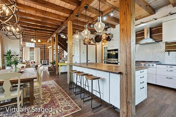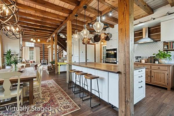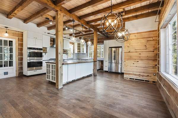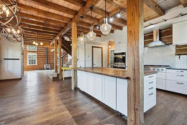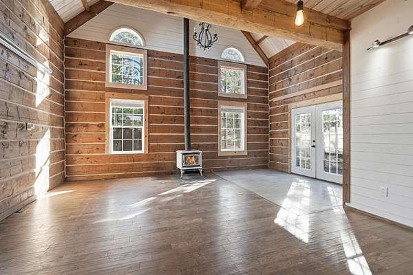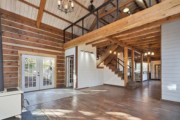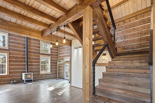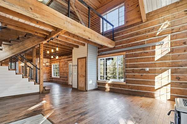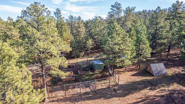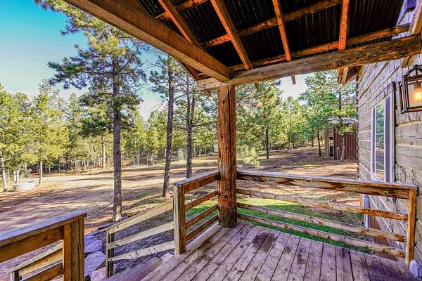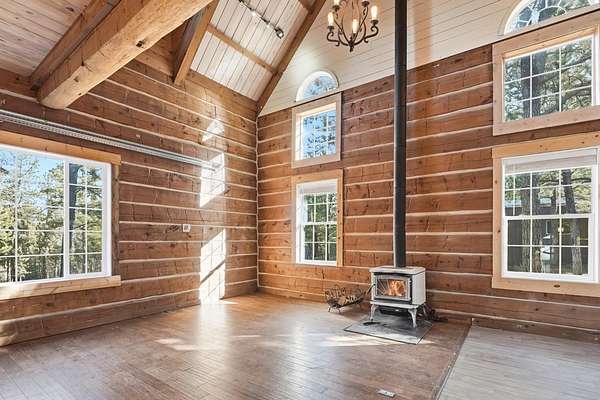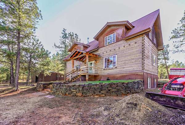 LOTS TO BRAG ABOUT WITH THIS ONE! Gleaming 1.5 story square log home on 10 serene, wooded acres. Soaring, wood-beamed vaulted ceiling and a cozy wood-burning stove, French doors leading out to the backyard & striking laminate wood flooring extending into a chef's delight of an eat-in kitchen, showcasing an enormous center island, heaps of cabinets, tile backsplash & stainless steel appliances (including a double oven & range hood). Adorned with wood plank walls & handy half bath rounding off the main level. Expansive loft hosts a sitting area showing off an aerial view of the main level living room below. Huge upper level master bedroom with full private bathroom, highlighting an oversized walk-in tile shower, jetted tub, basin sink, and water closet. The sprawling basement houses a family room with wood-burning stove, 2 more bedrooms, office/non-conforming 4th bedroom, full bathroom, and laundry room. Attached 2-stall garage, lovely covered front stoop, fenced-in chicken coop, additional structure ready for a handyperson to transform the space. Tucked away in a perfect rural setting halfway in between Custer and Hot Springs. Home does need a little TLC and is just waiting for your finishing touches.