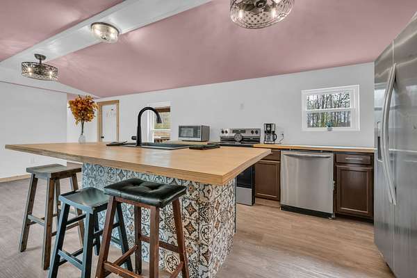 MOTIVATED SELLER!! Renovated and beautiful! Situated on 5+ pastoral acres. Lovely kitchen with island. New windows, doors, siding. 3 Bedrooms. 2 full baths. Designer touches throughout! New Della HVAC systems. Covered deck. 2 car carport. Garden shed. Terrific location!