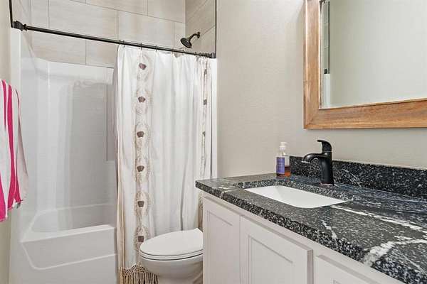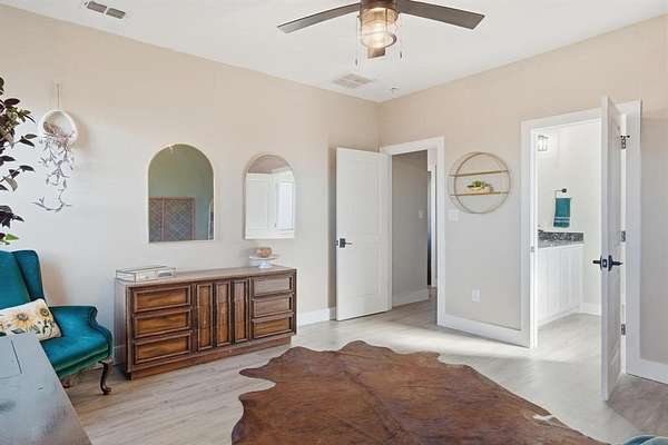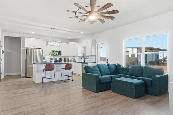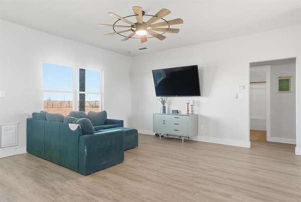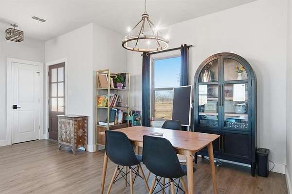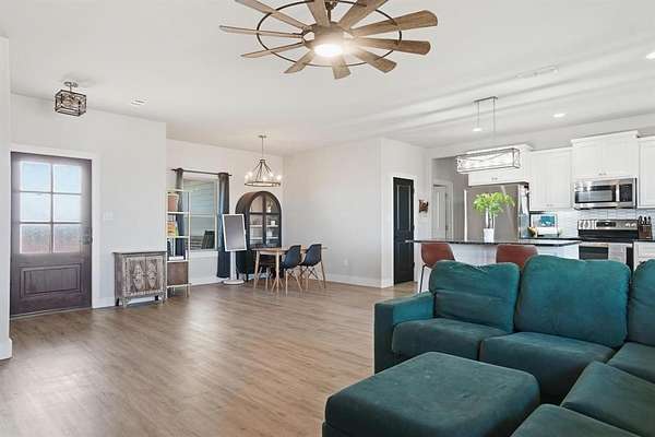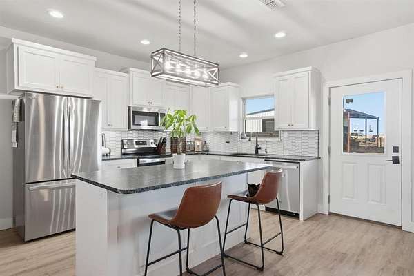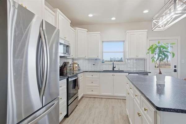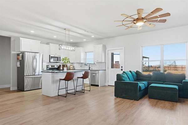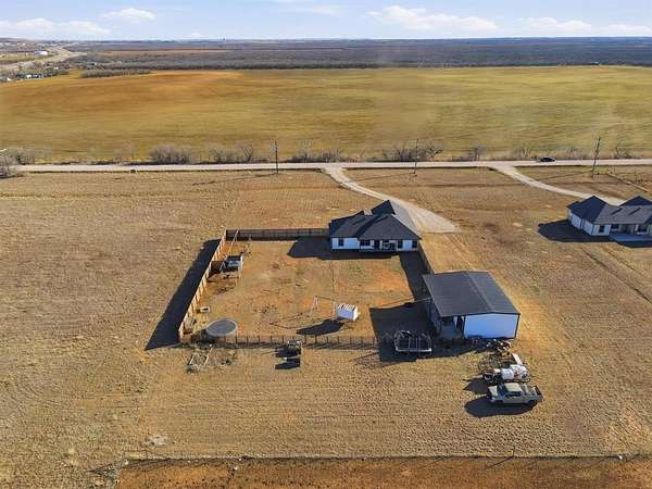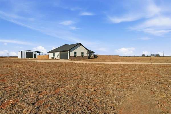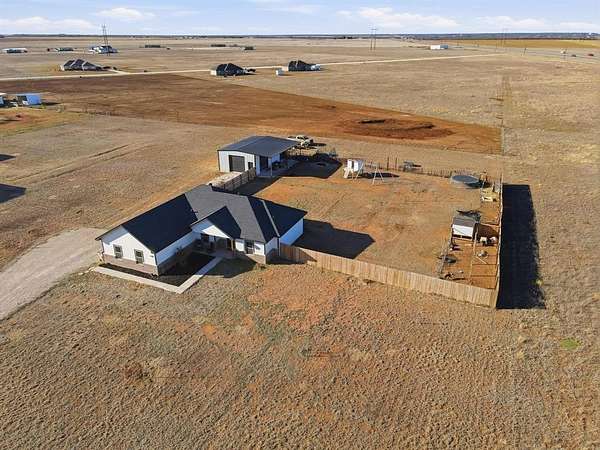 Welcome to this beautifully maintained one-owner home built in 2023, offering 3 bedrooms, 2 bathrooms, and 1,475 square feet of thoughtfully designed living space on 1.5 acres in Hawley ISD, located outside city limits. This open concept home features a split floorplan that provides privacy and functionality. The kitchen highlights include an electric range, microwave, and eat-in island, with granite countertops throughout the entire home and luxury vinyl plank flooring. The spacious primary suite includes an en-suite bathroom with a separate shower and soaking tub, along with a walk-in primary closet and built-in shelving in all closets for added organization and convenience. Outside, enjoy a privacy-fenced yard and a 40x24 shop, perfect for hobbies, storage, or projects. With plenty of room for animals and wide-open space to enjoy country living, this property offers the ideal blend of modern finishes and peaceful surroundings. Additional bonus: this home is VA assumable, offering a great opportunity for eligible buyers to take advantage of an existing VA loan.