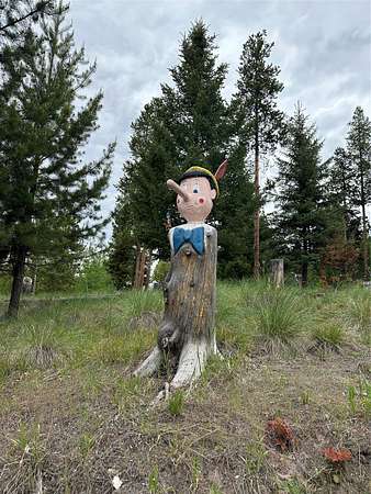 Delightfully unique this 5.33 Acre parcel known as "Pinocchio Hill" a landmark of Seeley Lake, is for sale! Built in 1997 a Single level Ranch style 2,234 sq ft is best described as a predecessor of today's "Mountain Modern". The Atrium/Sunroom Entry with skylights, large windows & paver floor is delightful welcome! The Great room with 9' ceilings is surrounded by large windows and natural light, the double sliding doors draw your eye across the room to spectacular views, beautifully maintained land & mountains in the distance. The patio is a favorite place for family and friends. 2 bd & 2.5 Ba., the floorplan designed for easy living! Open kitchen with solid oak cabinets, newer black stainless appliances and stainless farmer's sink. The peninsula a great work space and buffet for entertaining. A half bath off the Great room is for convenience. The bedroom wing: Privacy: Primary on suite: jetted tub with a view, Walk in shower atrium door for access to patio! Bedroom 2: On suite with modified accessible bathroom. Bedroom is attached to the entry sunroom for easy access and privacy for guests. A Multipurpose Office/ Laundry room behind the kitchen has a door to a private deck, and attached double garage. The 396 sq ft. Bonus Room addition was completed in 2010. A slider to the deck from the Bonus room is delightful. 5.33 Acre parcel that borders State land is ever changing, some landscaping, most natural & fuel mitigated, some log carvings remain on the property and includes a children's log cabin. Located just minutes to Double Arrow Lodge & Golf Course, and the community of Seeley Lake a mecca of year round recreation: Paved Roads and Mountain life.. A rare opportunity must see property!