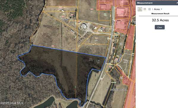 Traveling North from Jacksonville towards New Bern turn right onto Old Us 17 in Maysville. You will pass the campground on the right side, continue until you see an old Metal Dilapidated building on the left this is part of the parcel the that is for sell. It includes approximates 30-35 acres.