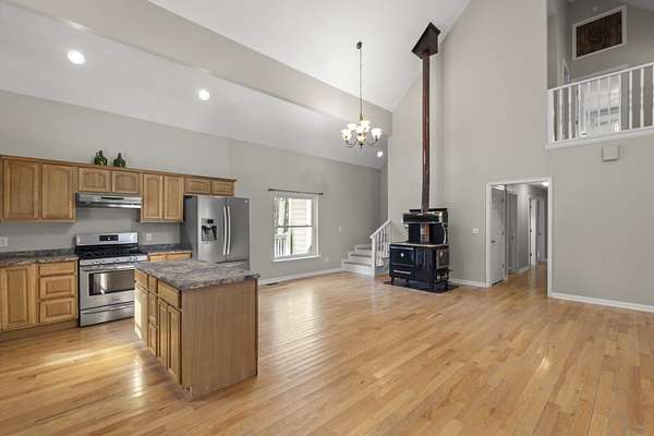 FARMHOUSE-INSPIRED HOME tucked down a LONG PRIVATE DRIVE on 12 SCENIC ACRES! Offering 2,400 SQ FT of FUNCTIONAL LIVING SPACE, this home blends MODERN CONVENIENCE with COUNTRY CHARM. Enjoy a COZY WOOD-BURNING FIREPLACE in the open living area filled with natural light and peaceful views.