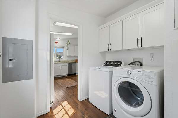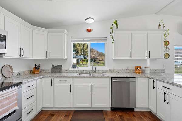 And the updates? They've already been done for you. Brand new roof on both the home and garage (2024), fresh exterior paint, new front porch, updated trim, fencing, sleek black hardware throughout the kitchen, laundry + bathrooms, and beautiful landscaping with a fenced yard, rubber mulch around the house and an enclosed garden with raised beds.