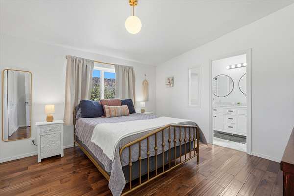 Thoughtfully remodeled with quality at every turn! You'll find warm hardwood flooring, elegant cabinetry, and bathrooms adorned with tiled showers and marble countertops. Breathtaking canyon views frame this home beautifully, while a mini split ensures effortless comfort in every season. The property itself is equally impressive: a detached garage, storage shed and a generous sized lot that offers endless possibilities! Room for all your toys, space to build your dream shop, or cultivate your very own hobby farm.