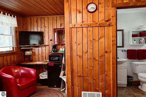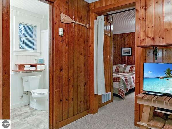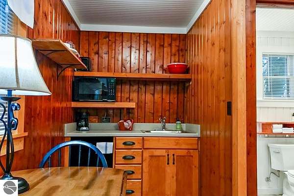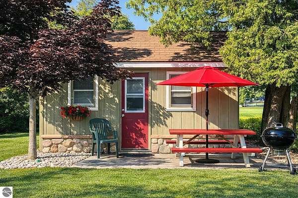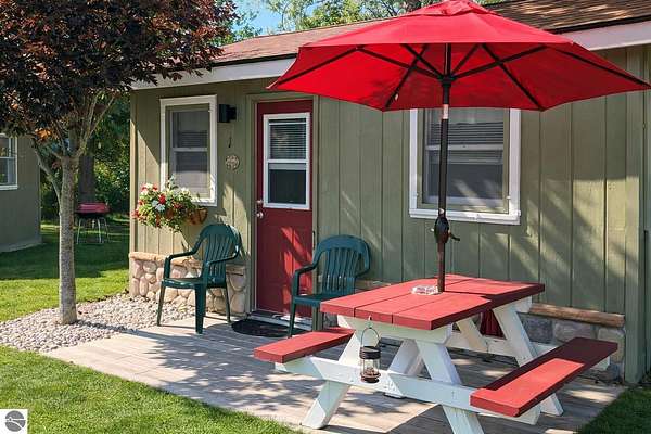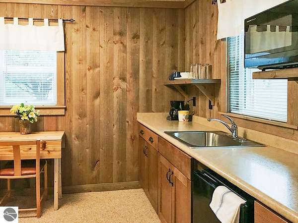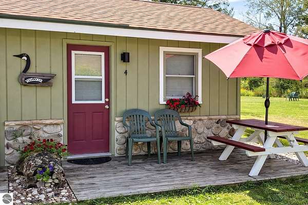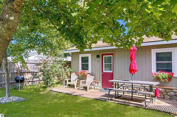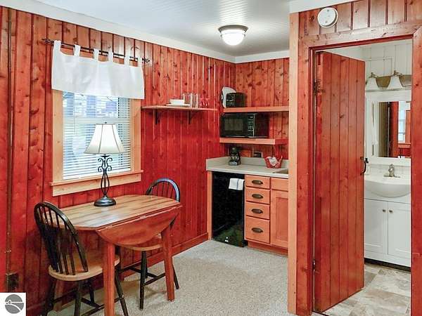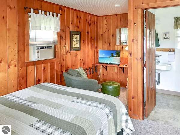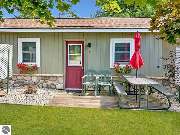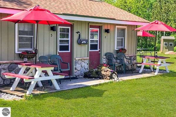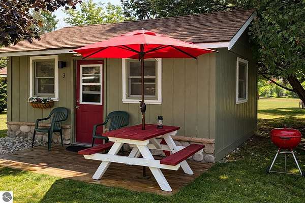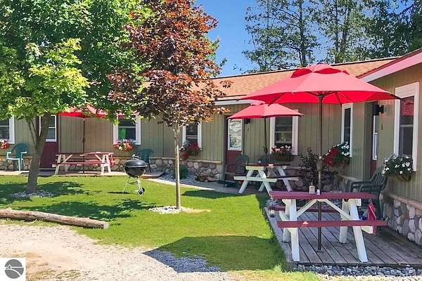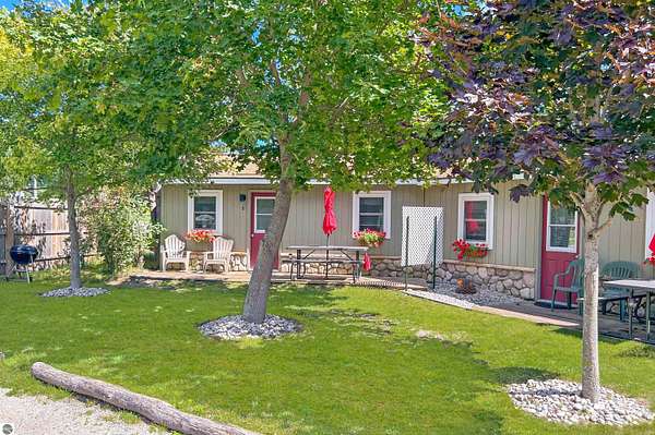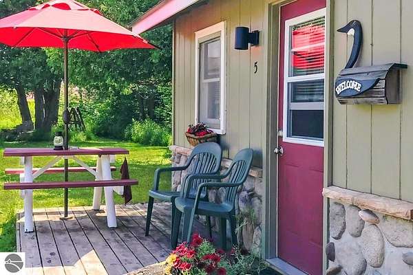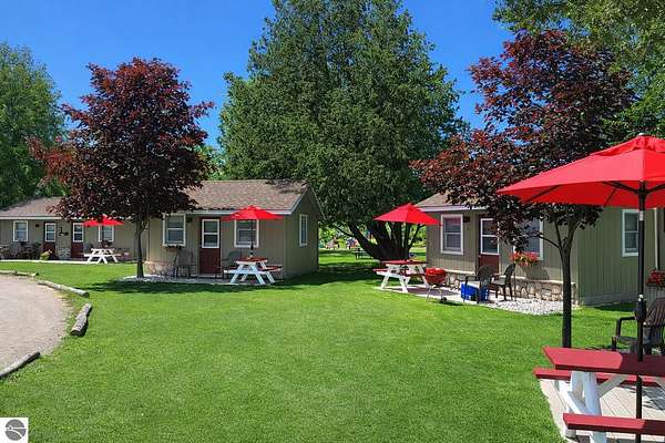 Cedar Ridge Cabins is a charming 8-unit cabin resort located in the village of Honor, just minutes from Sleeping Bear Dunes National Lakeshore and the Lake Michigan shoreline. The property features a mix of studio and one-bedroom cabins across three buildings, offering updated interiors with classic Up North appeal. Amenities include private decks, outdoor seating areas, WiFi, DIRECT ACCESS TO THE PLATTE RIVER and a welcoming setting for guests seeking a Northern Michigan getaway.----- The improvements total approximately 3,700 square feet and include a large office area, game room, and a front garage space with potential for retail or additional business use. Situated on nearly 5 acres, the property offers a spacious, park-like environment with plenty of room for the guests.---- Ideally located near the Platte and Betsie Rivers, Crystal Lake, and within easy driving distance to Traverse City, Frankfort, Glen Arbor, and Empire, this property benefits from strong tourism traffic and repeat clientele. The area is known for its outdoor recreation, scenic beauty, and vibrant seasonal economy. Offered at $750,000 for the cabin resort, with the option to purchase the adjacent owner/manager home for a combined price of $950,000 and a total of almost 10 Acres, providing a complete live/work Northern Michigan investment opportunity.