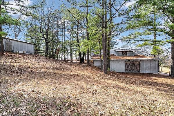 Scenic estate on 21 acres in Winslow. Unique opportunity at one of the highest elevations in Washington County, at 1920 ft. above sea level. Spring-fed pond accentuates the beauty of the well-maintained acreage. Spacious 2-story home is ready for your special touch with panoramic views from every window. Large kitchen with pantry, oversized primary suite with 3 closets, 3 additional bedrooms, 3 full bathrooms, living room, family room and bonus room. New roof, inviting brick fireplace and covered porches add to the features. Multi-bay barn with tack rooms, hay loft and gables plus a shop with concrete floor and storage shed. Convenient location off I49, only 10 minutes to Devil's Den State Park, 20 minutes to Fayetteville and 30 minutes to Ft. Smith. Recreation, commercial and development potential. No deed restrictions. Appointment only. Being sold AS-IS.