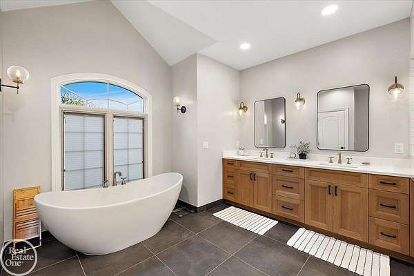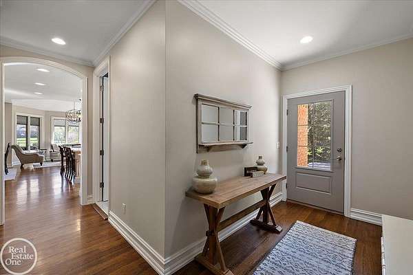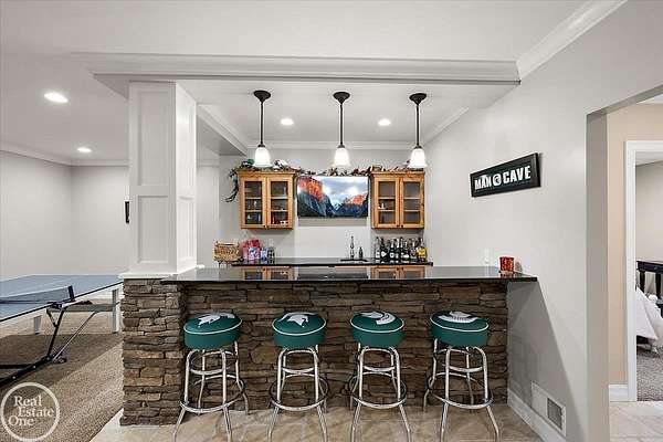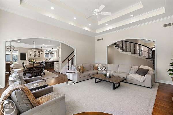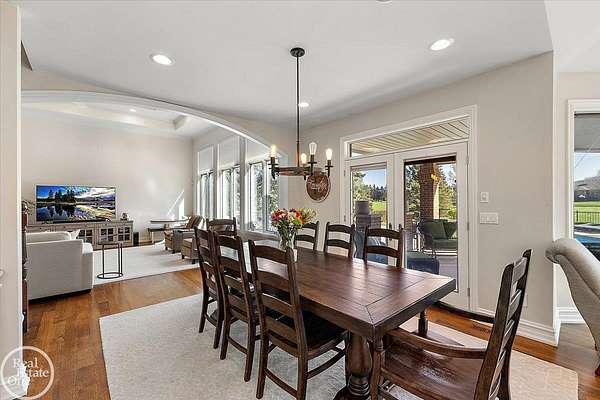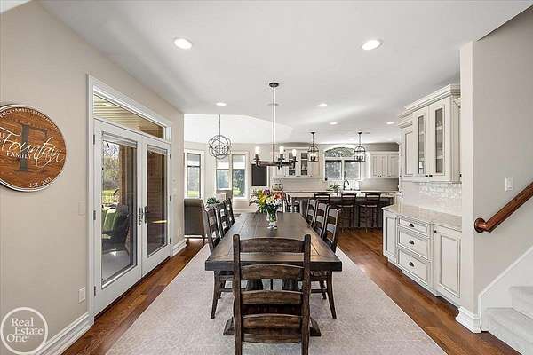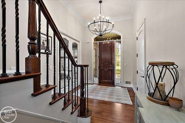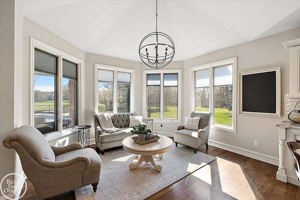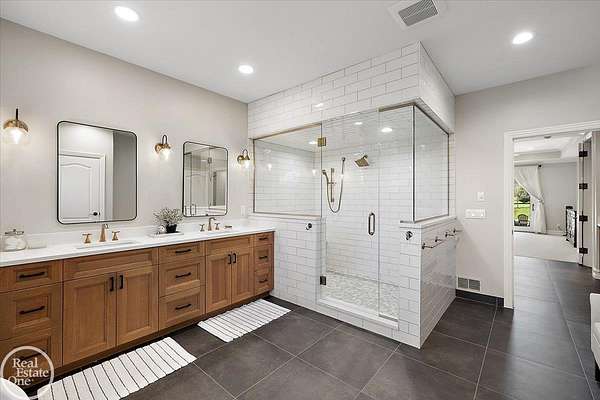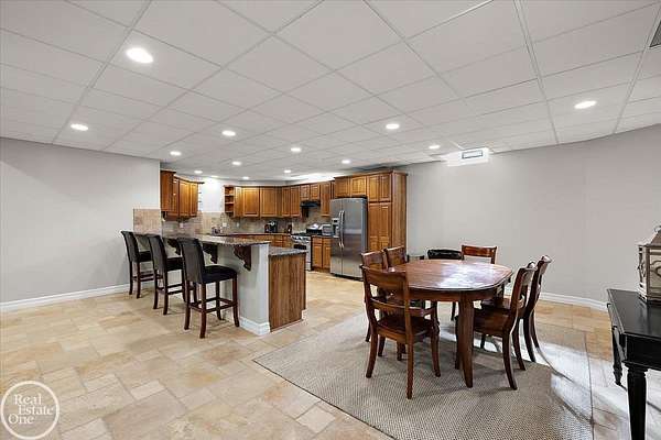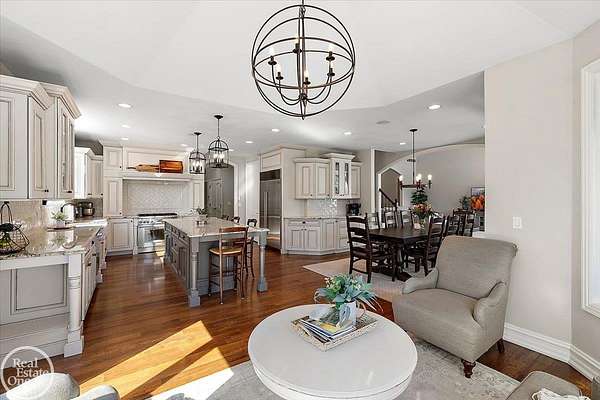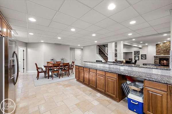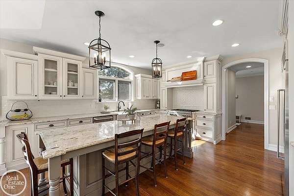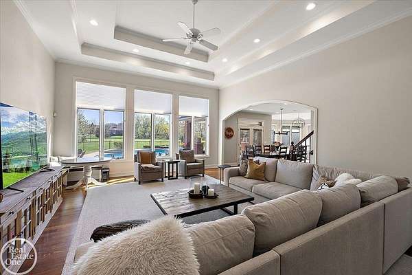Stunning 1 1/2 story home with finished basement on private 1.72-acre lot with built-in swimming pool & 6-car garage. Hard to find a home with the amenities & finishes this home has to offer. Large chef's gourmet island kitchen with built-in commercial grade appliances. Spacious 1st floor primary suite w/ luxury bath, oversized walk-in closet & door-wall to pool. 3- large bedrooms upstairs all with private bath access. Finished lower-level features wet bar, 2nd kitchen, 5th bedroom, fireplace & wide-open entertaining area. Fantastic pool area & patios with custom inground pool & hot tub. Private back yard extends apprx. 300' past fenced area offering a great play space for kids. 2nd 3-car garage has stairs to upstairs attic bonus room. All high end finishes throughout. City Sewer, no septic.