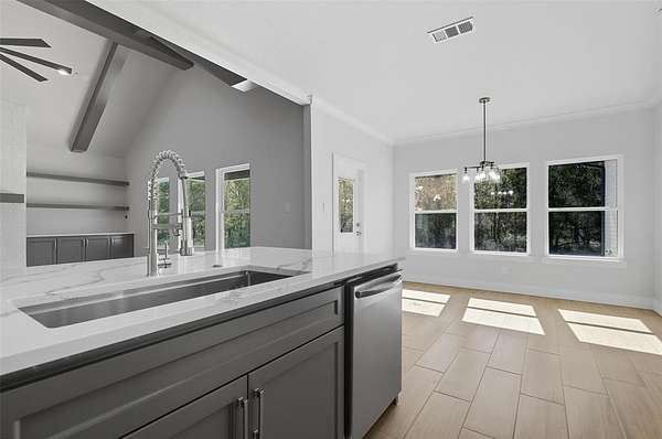 Beautiful 3-2-2 home nestled in Grison Estates Community. 3 Bed, 2 FULL bath, 2 Car garage, and Office (total of 4 ROOMS) . Home features ceramic tile floors, decorative lighting, custom built-in cabinets throughout. Calcutta Venezia QUARTZ Counter tops throughout, vaulted ceiling in living area and wood log Fireplace. Kitchen boasts a large custom built island with 36 inch sink, electric range, perfect for both entertaining and daily living. Master bath features tub, shower, HIS and HERS vanities, and walk-in closet with built-in dresser and shelves (CUSTOM CABINETRY throughout). Back Covered patio with ceiling great for those outdoor family gatherings. Finishing touches are still being made to the home, ex touchup paint etc.