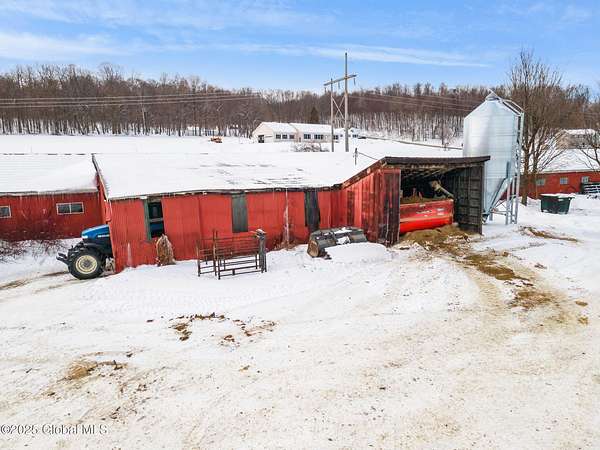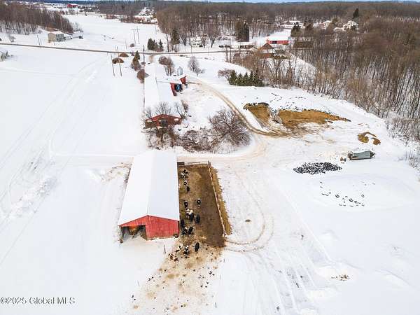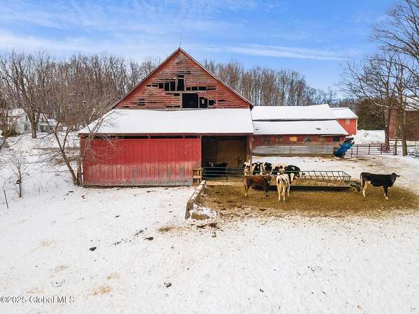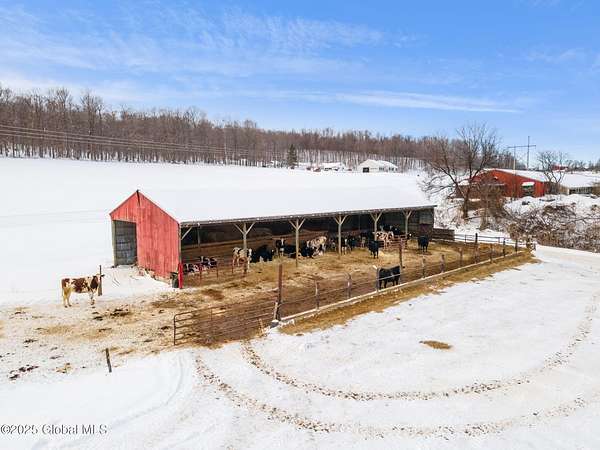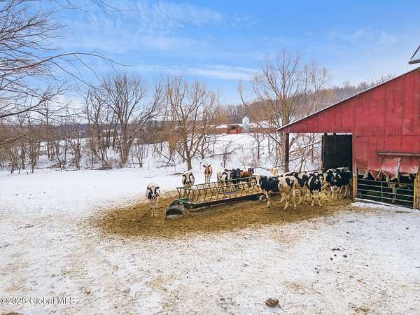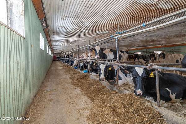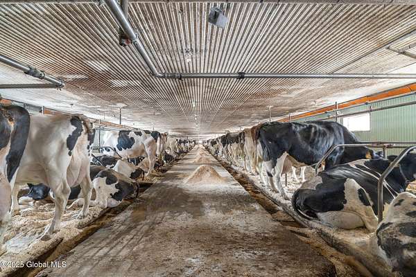 Rare opportunity to purchase a fully operating very successful dairy farm located in the center of New York State. Easy access to Route 20 or I-88. Total 300 acres with 200 very productive acres all in one field. 148 stall dairy barn with large stalls, 2000 gallon bulk tank with 8 auto take offs milking machines. 40x60 open front Heifer/Dry Cow Barn, 44x50 Heifer barn. Two bunk silos, 40x60 and 26x70. Machine shed, 26x40 garage and several other outbuildings. 5 bedroom, 1.5 bath farmhouse and a new manufactured home. All buildings in good condition. Seller leases another 125 tillable acres. One of New York States best agricultural farms.