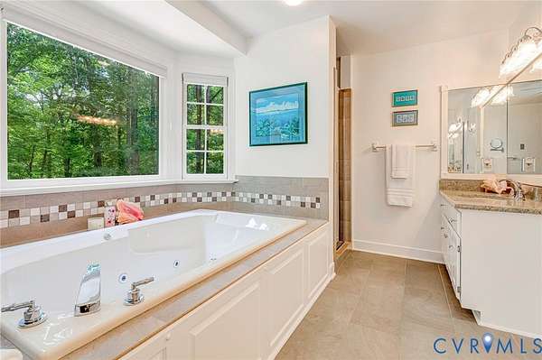 - Bath In Primary Bedroom, Bay Window, Bookcases, Breakfast Area, Built In Features, Ceiling Fans, Double Vanity, Eat In Kitchen, Fireplace, Granite Counters, Jetted Tub, Kitchen Island, Pantry, Recessed Lighting, Separate Formal Dining Room, Track Lighting, Walk In Closets