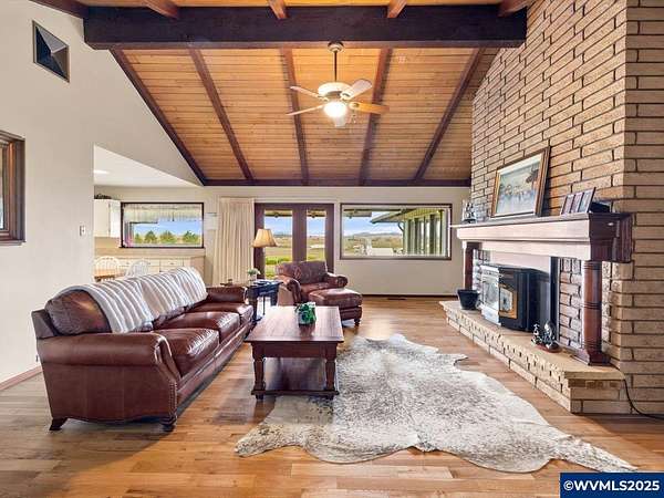 Experience the charm of country living in this spacious ranch-style home set on over 18 acres of scenic land. Breathtaking views, a stunning seasonal pond with a brand-new deck. Inside, classic design meets timeless warmth with exposed beams, natural stone details, and rich wood accents throughout. The layout features two living rooms, a formal dining area, a generous kitchen, an office, a bonus room, and four bedrooms with 3.5 bathrooms. Ample storage is available, along with an attached one-car garage, a detached three-car garage with extra-tall bays, and a large shop—ideal for hobbies, equipment, or future projects. Recent updates include a new HVAC system (2023) and roof replacement (2015). A detailed list of maintenance and improvements is available upon request.