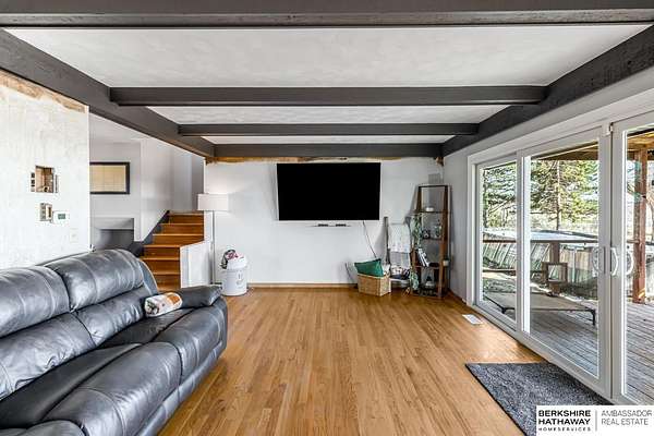 Alec Oberndorfer, M: 402-905-1994, alec.oberndorfer@thebrileyteam.com, https://www.bhhsamb.com - This inviting multi level home is filled with natural light thanks to an abundance of new windows throughout. The living room features an exposed beam ceiling and sliding glass doors that open to a sprawling 1.8 acre backyard perfect for indoor outdoor living. Backing to The Players Club at Deer Creek, this home boasts one of the largest and most stunning yards in the neighborhood. Enjoy outdoor entertaining in the beautiful backyard complete with a covered deck, above ground pool, and an abundance of mature trees that create a peaceful private setting. The second floor offers three bedrooms and an updated full bathroom while the primary suite includes its own private three quarter bath. The partially finished basement provides plenty of space to customize to your needs and includes the laundry area along with generous storage & workshop offering endless potential and multiple ways to truly