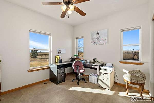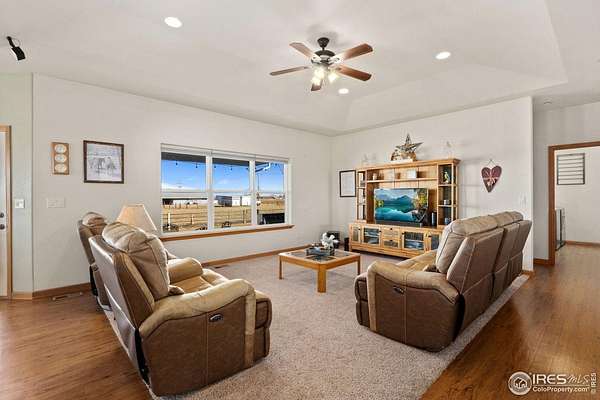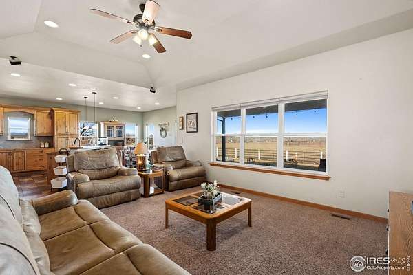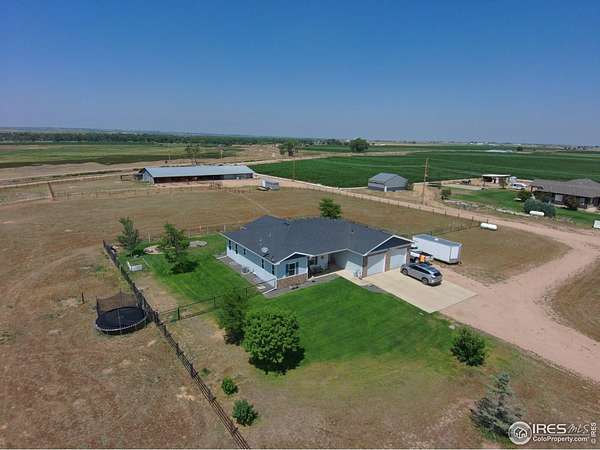 Imagine waking up every morning to a tranquil environment, stunning views of Longs Peak, the fertile South Platte River Valley & Wildcat Mound. This beautiful custom ranch style home is situated on a level 5.5 acre site & features a country kitchen with breakfast bar, rustic knotty alder wood cabinets, large eating space/dining area open to a large light filled living room with volume ceiling. A few short steps to the covered patio, take in the quiet country side with a cup of coffee & soak in the undisturbed surroundings and lush backyard landscape. The expansive master suite includes a private 3/4 bath with huge shower, double sink vanity & large walk-in closet. The main floor laundry/mud room is fabulous, designed with country living in mind & includes tons of storage & counter space. Professionally finished basement features a 4th bedroom, 3/4 bath and expansive family room that offers plenty of room for games & home theater + terrific storage. If you happen to have livestock, you will totally appreciate the fabulous fencing, sturdy stock pens & 4 stall barn with automatic waters, hay storage & tack room. The barn and shop cover an area of approximately 5,589 sq. ft. with the shop being approximately 40X50 and includes power, lights, 220, concrete floor & large doors. This outbuilding offers all kinds of possibilities depending on your needs, hobbies and interests from horses, cattle, goats, alpacas or llamas to cars, trucks, boats, razors, atv's and more. The location offers quick and easy access to Hwy 85 allowing an easy commute to Denver and quick access to northern Colorado locations.