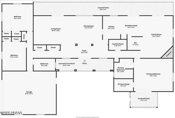 - Bathroom x 2, Bedroom x 3, Dining Room, Family Room, Laundry Room x 2