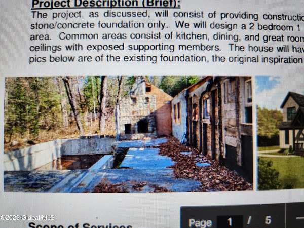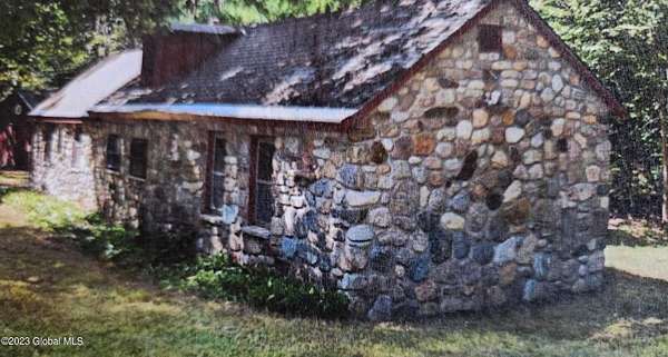 GREAT DEAL! Fantastic location by lakes, skiing and rivers . Lot has been excavated partially cleared of tall trees and perk test done for septic. Winchip engineering 2022- Two wells. One original and other drilled. The original dug well is lined with stone well. Second well drilled. Three stone walls and stone fireplace remain Original foundation Minutes to Friends Lake, Minutes to Hudson River, Horseback riding just 1/2 mi away. Floor plan attached fits footprint plus a foot. 27 min to Bolton Landing Lake George. Or use as guest cottage -workshop and build larger home in rear. Cobble stone walls on original foundation built 1920. New foundation for underground utilities and weight bearing for second floor has been constructed. Broker owner