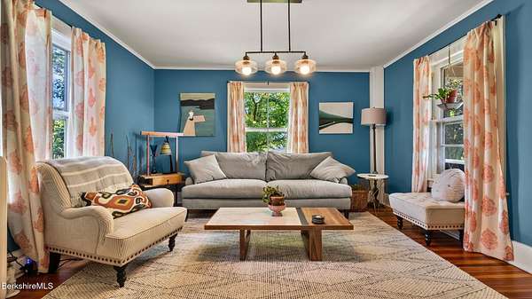 Beautifully appointed four-bedroom, one-and-a-half-bath contemporary New England farmhouse, perfectly situated in Egremont's most desirable location, Baldwin Hill. This thoughtfully designed residence blends timeless farmhouse charm with light filled rooms, delivering a serene retreat with Iconic Westerly Berkshire views. Protected land (APR Land) both front and rear ensure these views are protected for generations to come.