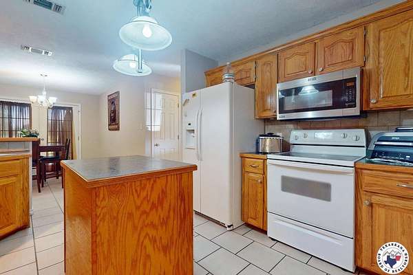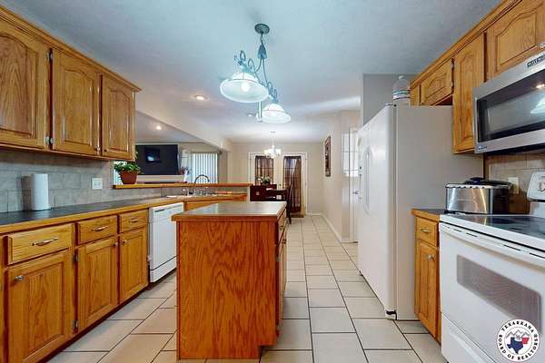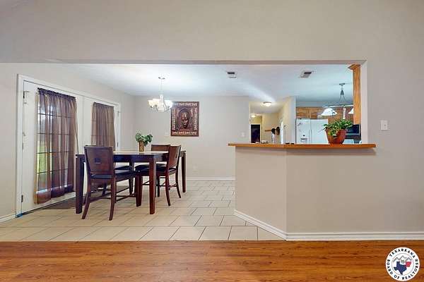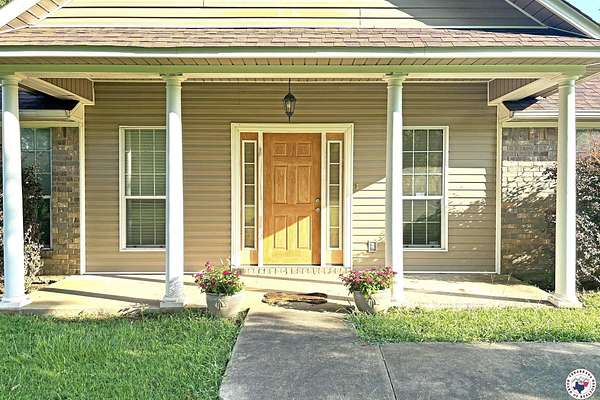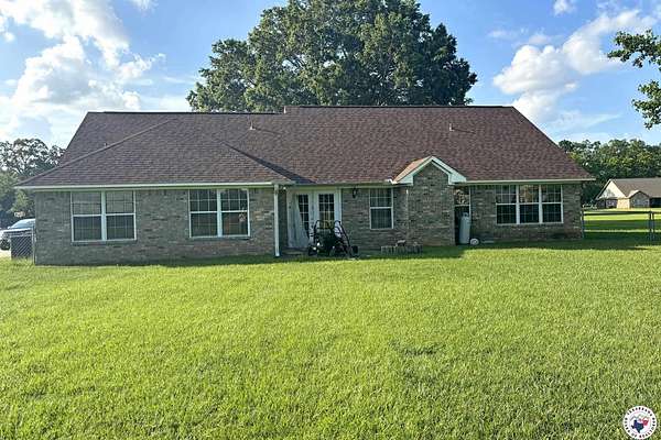 Welcome to a beautifully maintained ranch-style brick home nestled on 2 peaceful acres just outside the city limits of Hooks. This 3-bedroom, 2-bath, 2car side entry garage blends comfort, function, and southern charm, starting with its inviting front porch graced by four elegant columns. Step inside to find a spacious layout featuring a formal dining room, a nice breakfast nook, and a convenient breakfast bar, perfect for morning coffee or casual meals. This home offers tile, rich hardwood floors, and plush carpet adds warmth to each bedroom. Enjoy seamless indoor-outdoor living with a double sliding glass door off the breakfast nook, leading to a nice covered patioGideal for relaxing as you overlook your fenced backyard. Whether you're looking for room to grow, space to entertain, or a quiet place to call home, this property offers it all with room to roam, and the charm of country living just minutes from town. Don't miss your chance to own this piece of Texas tranquility!