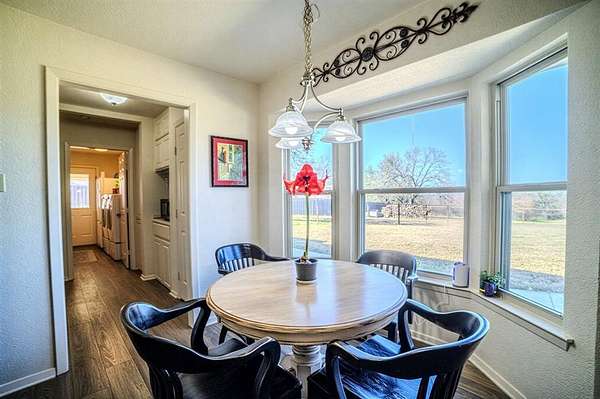 Discover this 1979 ranch-style home in Oakwood Estates in Weatherford, offering 3 bedrooms, 2 bathrooms, 2 living areas, and 2 dining spaces for flexible use. Located in the county on a combined 4.82 acres, the property blends tranquil country living with convenient access to nearby city amenities. The front of the property is highlighted by gorgeous mature oak trees, creating a welcoming, park-like setting and strong curb appeal. Enjoy meaningful savings with no HOA fees, no water bill, and no city taxes due to the location. An attached 2-car garage plus 2-car carport provide ample covered parking, while portions of the land are fenced and cross-fenced, offering functional areas for animals or separate pastures. A versatile 30x28 barn with 3 stalls and an upstairs finished space currently used as a "man cave" or hobby room adds excellent potential for animals, storage, or a workshop. Additional tax savings are available as this property currently has an agricultural exemption.
