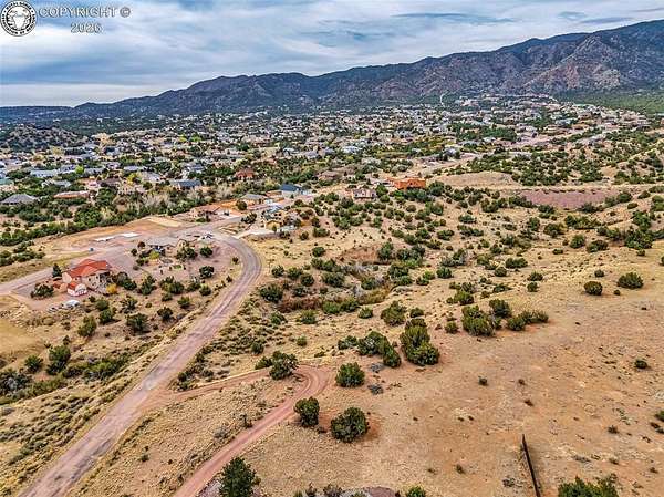 This majestic and home site in the foothills of southwest Canon City has 360 degree views of the mountains and city below, yet is just minutes from the Arkansas Riverwalk and Temple Canon Park. Located in desirable Dawson Ranch, the community is close to everything yet worlds apart. The front half of the lot, with it's rugged topography, bristlecone pine and juniper trees provides privacy from the street and access road. The back half of the lot offers a large flat building envelope, to be accessed from a private road serving only 4 other homeowners. To the west, enjoy no rear neighbor and a stunning mountain backdrop, with more views to the north, including Pikes Peak. This is one of the few remaining lots in Dawson Ranch, offering trails, equestrian facility, city water and sewer. All utilities are at the street. Dawson Ranch has an HOA but membership is voluntary.