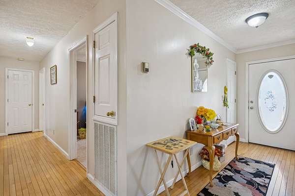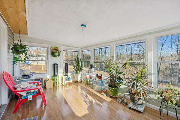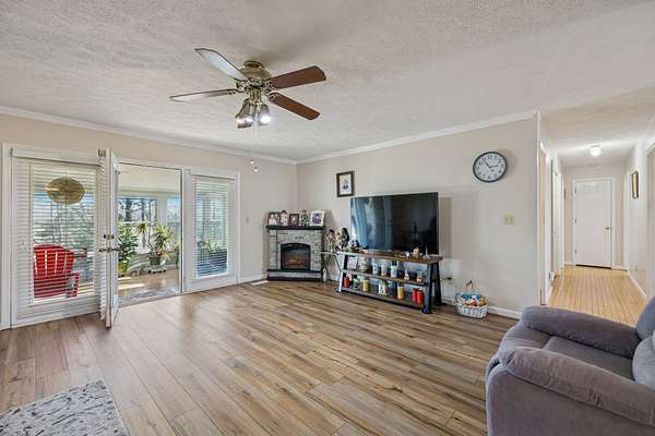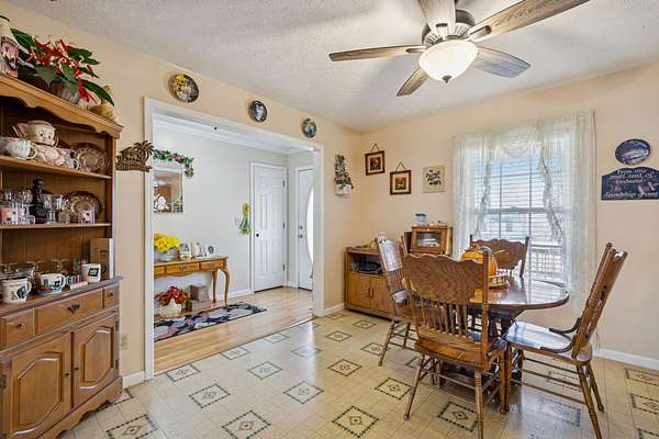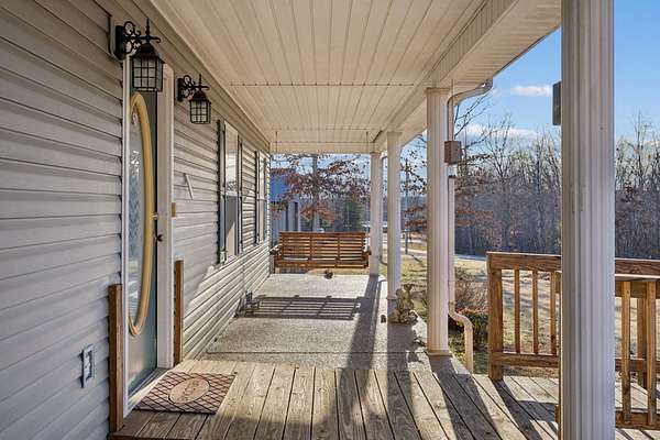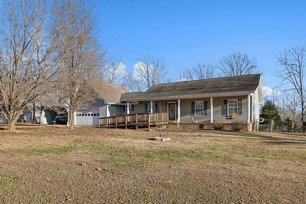This Charming Southern Living property boasts a large, covered front porch on 1.76 acres. The finished living space on one level has potential to expand into the full unfinished basement with plumbing already in place. Through the front door, step into the foyer that leads to the large living area with oversized cased doorways that create an open concept feel. An enclosed back porch, lined with windows, offers space for your greenery, sitting area, and extended views of your fenced in back yard. Master has ensuite bathroom with walk-in closet and 2 additional bedrooms with ample closet space. Attached 2 car garage for parking or hobbies. Additional covered parking for cars, boats, trailers, or toys! The peace of living on a dead-end street is unparalleled. This acreage allows space for gardening and outdoor recreation. This home offers everything that southern living is all about!