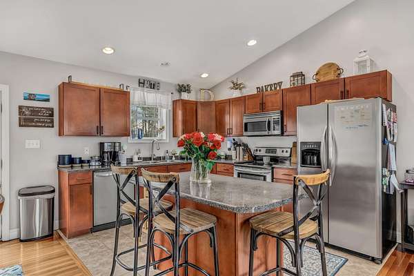 This sweet home is a rare find and will be sure to check all the boxes! It's conveniently located in a highly desirable Brewer neighborhood in close proximity to schools, hospitals, restaurants, shopping, the interstate and has over 5 acres at the end of a dead end street! This 3 bedroom 2 bath, open concept home has 2050 square feet and is energy efficient with radiant heat in the lower level, additional hot water baseboard and a heat pump on the main level. The beautiful bonus room on the lower level makes the perfect flex space for an office, media room, play room, man cave, etc if it is not needed as a third bedroom. The beautiful back deck overlooking the private yard is the perfect place for grilling or relaxing after a long day at work. If you love being outside but also love in town amenities this is the one. Walk in the woods, garden, sit by the fire pit, play ball, take family bike rides through the neighborhood or to the playground and basketball courts close by. Schedule your showing today...this happy place is not going to last long!