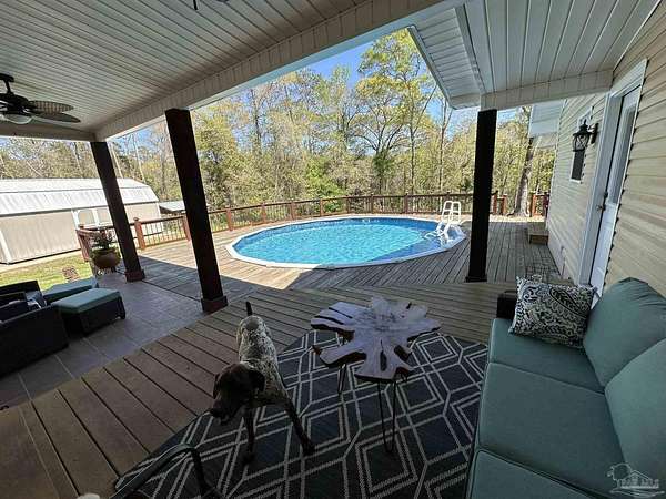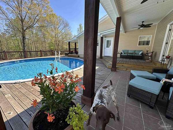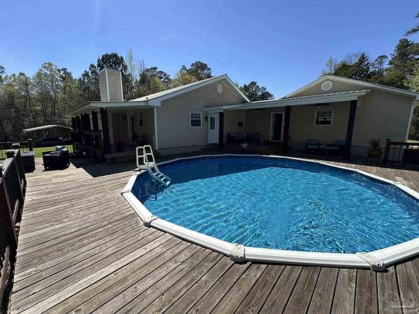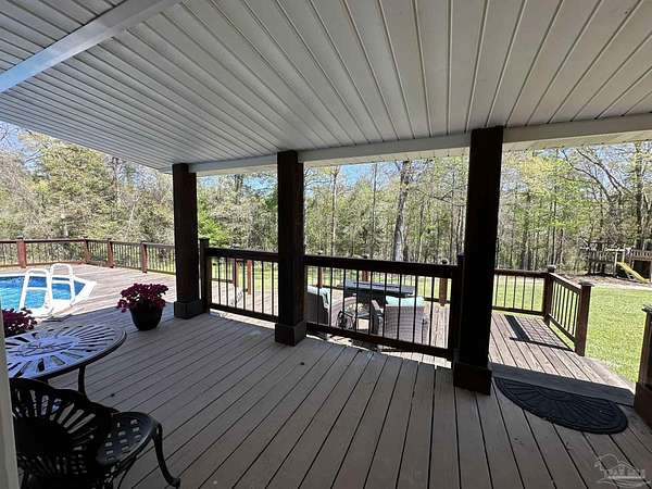 Beautifully maintained and full of character, this 3-bedroom, 2-bath home on 7.5+/- Acres and a Pond, offers a setting that immediately stands out. Eucalyptus hardwood floors bring warmth and richness throughout, while showers finished with tile and a resin tub add a clean, custom touch. The layout is both comfortable and inviting, designed for everyday living with a natural flow between spaces. Step outside and experience what truly sets this property apart-the expansive deck quickly becomes a favorite "room" of the home, offering a seamless extension of the living space. A sprawling, elevated deck surrounds the pool, creating a stunning space for relaxing, entertaining, grilling, or simply enjoying the view. Covered porches and multiple seating areas provide year-round enjoyment, whether starting your morning with coffee or winding down in the evening. The expansive lawn, mature trees, and private pond add depth and beauty to the landscape, offering space to explore and enjoy the outdoors. Additional features include a 2-car garage, a pole barn, and a shop, which provide flexibility for storage, hobbies, or equipment. The combination of open yard, wooded surroundings, and thoughtfully designed outdoor living spaces creates a property that is both functional and inviting.