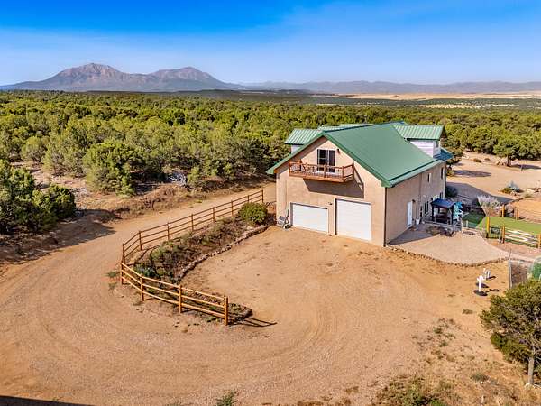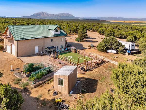 Escape to your own slice of Southern Colorado paradise with this impressive custom-built home that's designed for both comfort and adventure. Finished in 2019 this red iron steel-structured house sits on a sprawling 35+ acre lot with million-dollar mountain views. Step inside to discover an open-concept living space featuring a gourmet kitchen that would make any chef jealous. The space boasts slow-close cabinet drawers, double convection ovens, a farmhouse sink, and custom granite countertops with a convenient breakfast bar. Radiant in-floor heating powered by a Bosch boiler system keeps you cozy year-round, while Pella windows flood the home with natural light. The upper level houses two generous primary bedrooms sharing a luxurious Jack and Jill bathroom. Down below, the basement provides excellent additional living or storage space, perfect for hobbies or entertaining. Outside is where this property truly shines. Multiple decks offer various spots to relax and take in those stunning views. The outdoor amenities include a hot tub for starlit soaks, a barbecue patio with horseshoe pit, a small greenhouse and garden. Two full-service RV hookups accommodate guests, while the round corral and various sheds serve practical needs. The attached two-car heated garage plus an additional detached oversized garage provide ample storage. Despite feeling wonderfully secluded, you're just ten minutes from town via well-maintained roads. With its quality construction, thoughtful amenities, and prime location, this property offers the perfect blend of luxury and rural living.