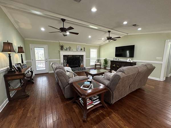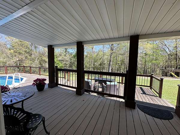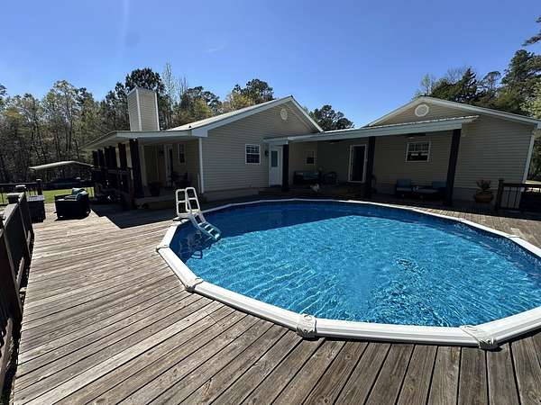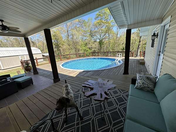 Beautifully maintained and full of character, this 3-bedroom, 2-bath home offers a warm, inviting layout with thoughtful details throughout. Eucalyptus hardwood floors bring richness to the living spaces, while showers finished with resin tiles add a clean, custom touch. Step outside and discover what truly sets this property apart--the expansive deck becomes a favorite 'room' of the home, wrapping around the above-ground chlorine pool and creating an ideal setting for relaxing, entertaining, or enjoying the outdoors. Covered porches and multiple seating areas offer space to unwind in every season. The property also features a 2-car garage, pole barn, outbuildings, and a private pond, adding both function and flexibility.