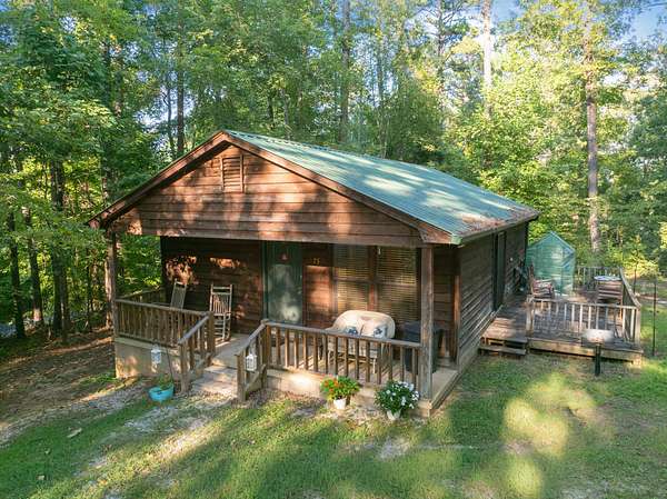 Secluded retreat featuring 7 charming cabins on 12.81 acres in a gated community with a private drive leading to all cabins. Currently operated as a 55+ community, 5 of the cabins are rented, offering excellent income potential. The main cabin is a spacious 2-bedroom, 3-bath home with 1,600 sq. ft. and is occupied by the owner. Five cabins are 2-bedroom, 1-bath units with 768 sq. ft. each, and one cabin--currently used as the office cabin--is a studio with 1 bedroom, 1 bath, and 512 sq. ft. Located next to Chickasaw State Park, this property offers an unbeatable setting for investment, a family retreat, or creating your own vision--all with privacy and natural beauty. Visit chickasawchalet.com for more information.
