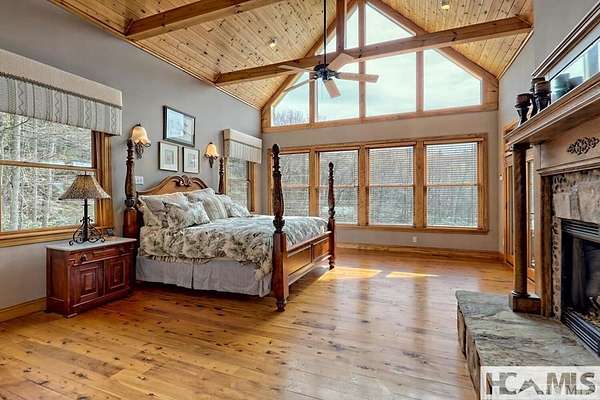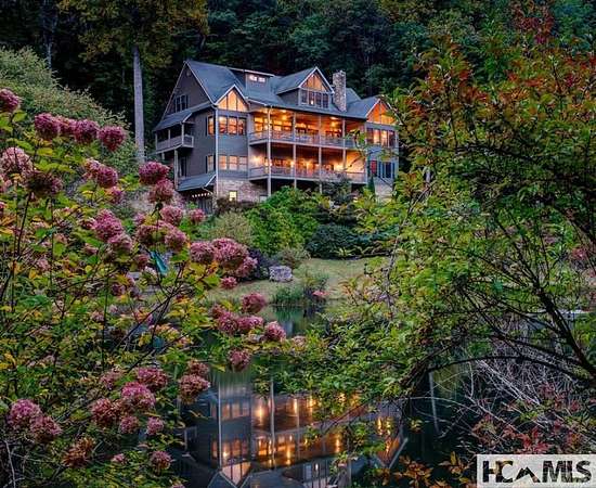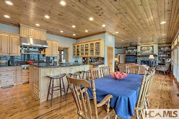 NEW HEAT PUMP and NEW ROOF - DEC 2025! Beautiful mountain home on 5.75 acres at 3300 feet elevation with 2 ponds and a waterfall makes this ultra special! 2 fireplaces, one in the living room and one in the master. The custom-made cabinetry is beautiful and extensive. Lots of room to entertain and for many guests. Large porches, carport, workshop and garage, 7 bedrooms, 7 baths. Adjacent to Sky Valley and public golf. Close to Highlands, NC, Clayton, GA, and thousands of acres of U.S. Forest.