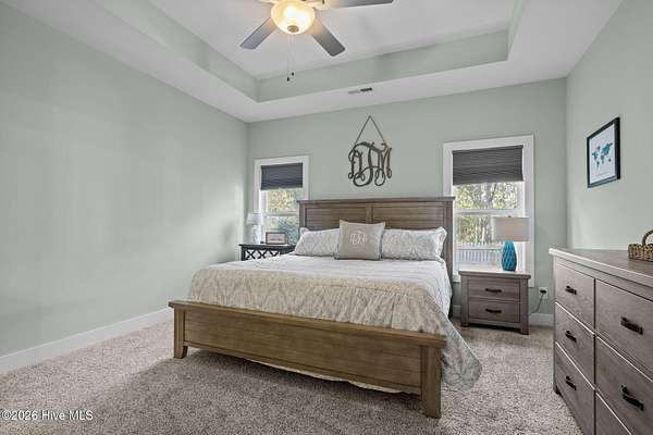 - Blinds/Shades, Ceiling Fan(s), Eat-In Kitchen, Gas Log, High Ceilings, Kitchen Island, Master Downstairs, Pantry, Tray Ceiling(s), Walk-In Closet(s), Walk-In Shower