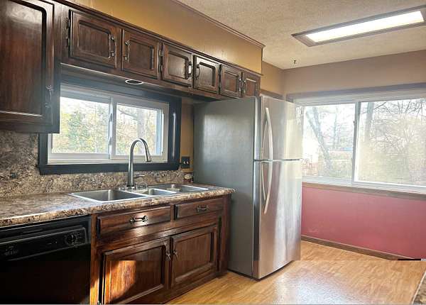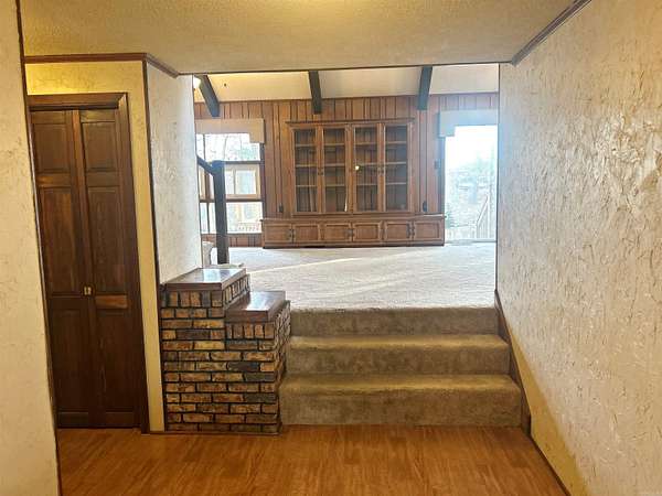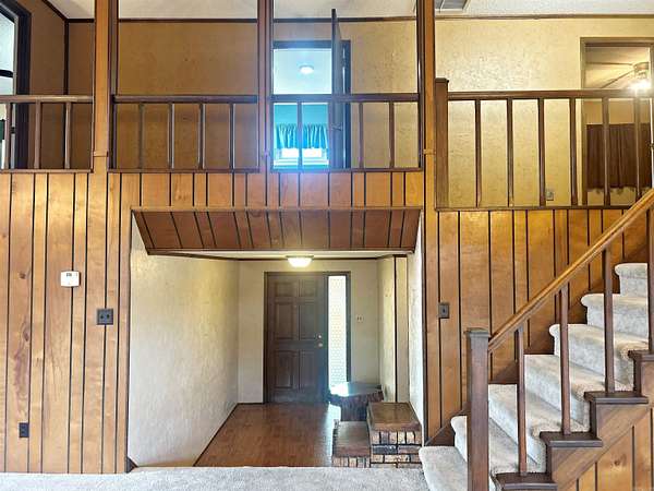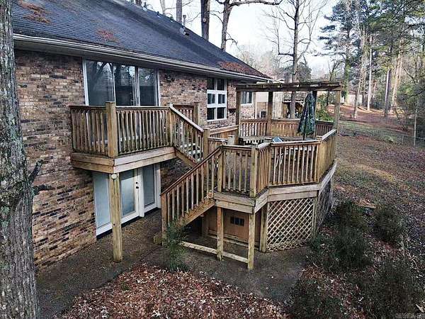This custom, craftsman style 4-bedroom, 4 bath home sits on 2 beautiful lots in a well-desired sub-division. It features a tri-level layout with a fully functional walkout basement apartment. It has two gas fireplaces, a vaulted living room/dining room ceiling several built in cabinets/desks and lots of storage. Updates include new windows, new roof and HVAC in 2024, and a new hot water heater. Extra insulation installed making for very inexpensive utilities. The large deck has a spectacular view of nature. Sitting minutes from the I-30 corridor and easy access to surrounding towns and shopping, this a must see for home shoppers needing large square footage. Schedule an appointment today!