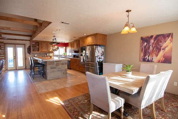 This contemporary 2 bedroom/2 bath home sits on 3-1/4 acres just about 15 minutes west of Llano. The home is spacious with an open concept kitchen and living area with vaulted ceilings. The bedrooms are well-sized and have plenty of storage space, including a walk-in closet and en-suite bathroom in the primary. A large covered back porch allows you to gaze over your property and there are facilities for all sorts of creatures, including chickens and horses. Close by the house is a well-maintained above ground pool. The property features many large oak trees and is enclosed with good net-wire fencing. The beautiful Llano river is just a 5 minute drive away, while the charming Castell General Store is a short 10 minutes away. The area is quiet with dark night skies and is located in the middle of one of the nicest parts of the Hill Country.